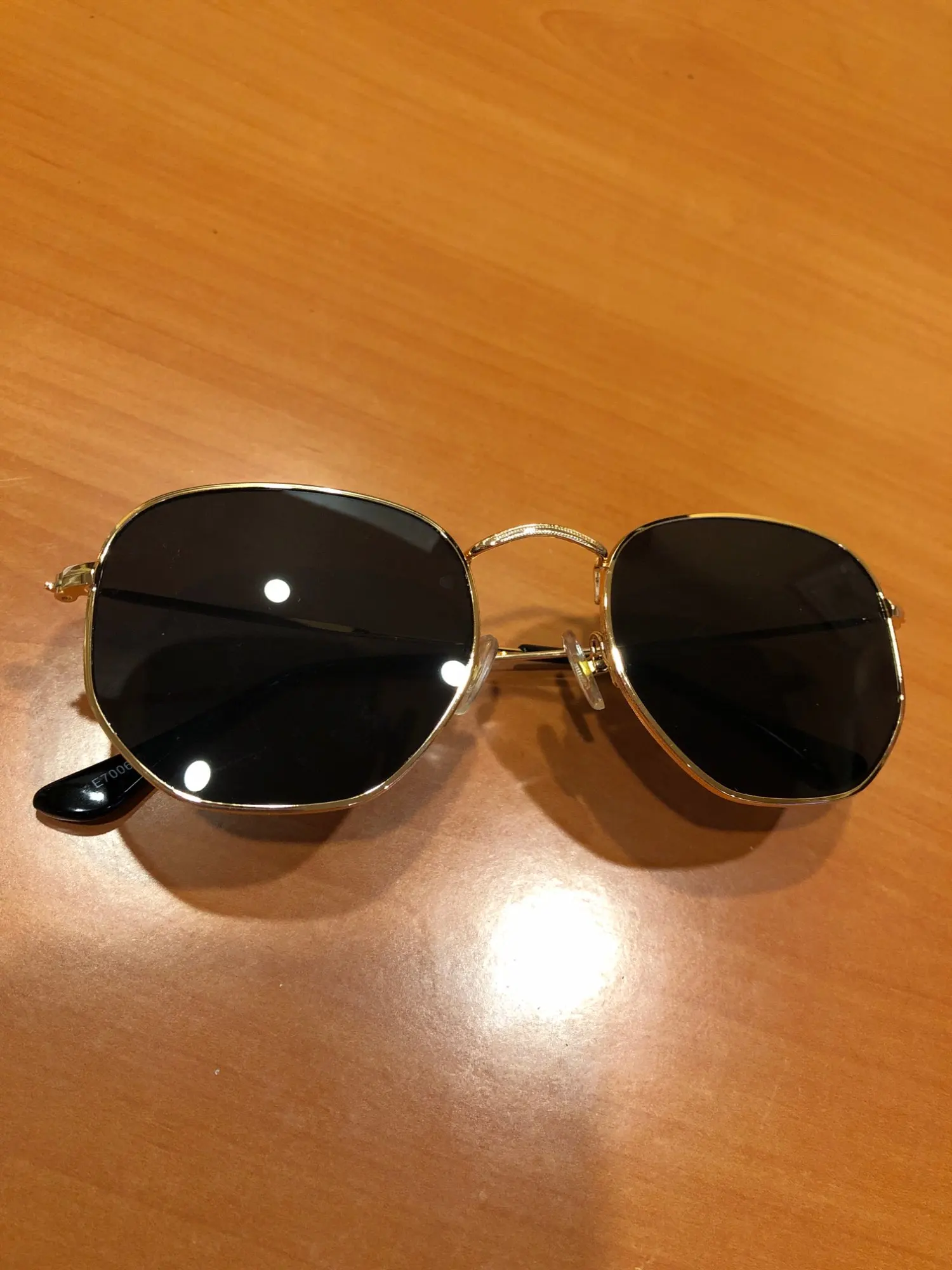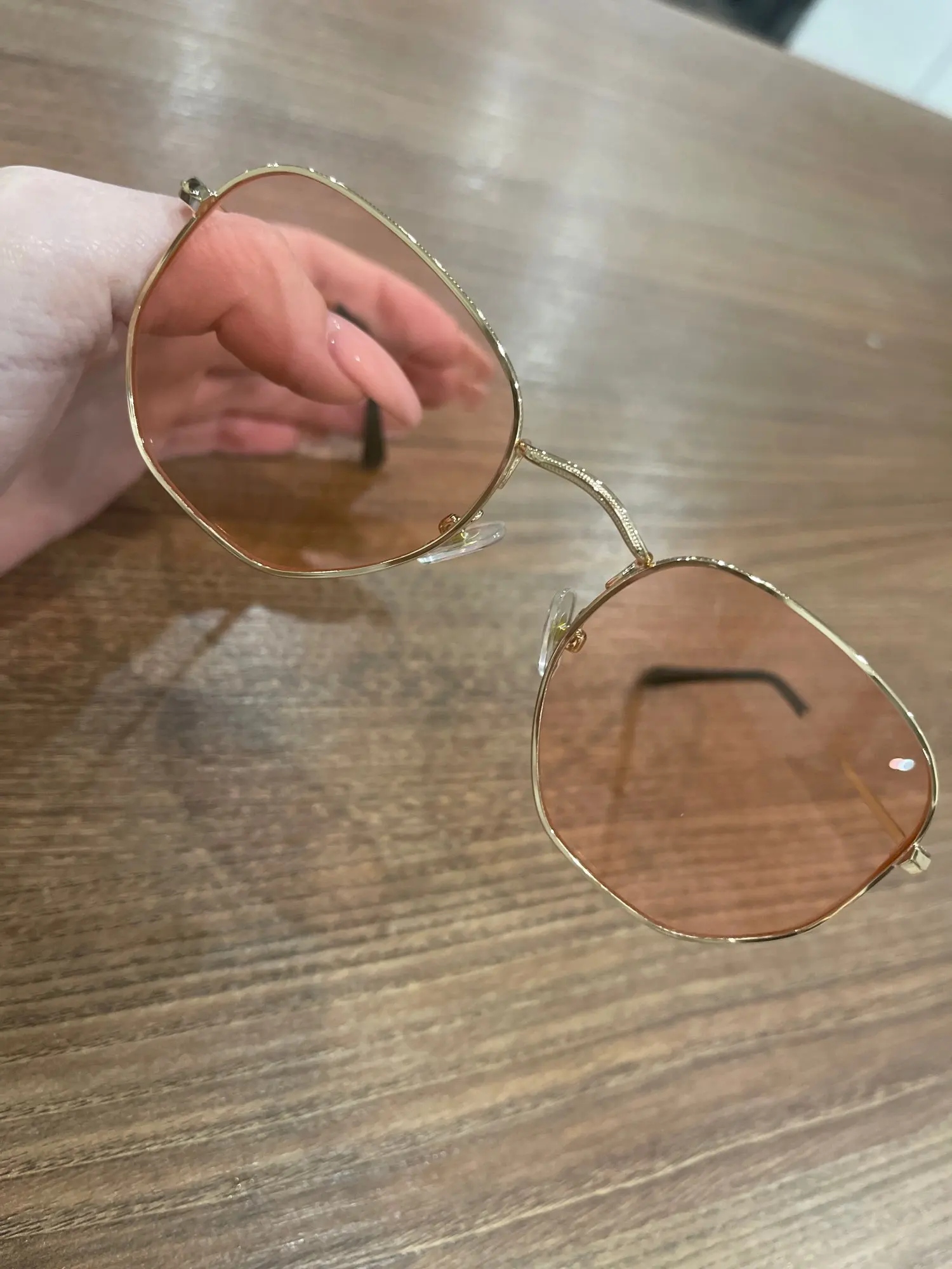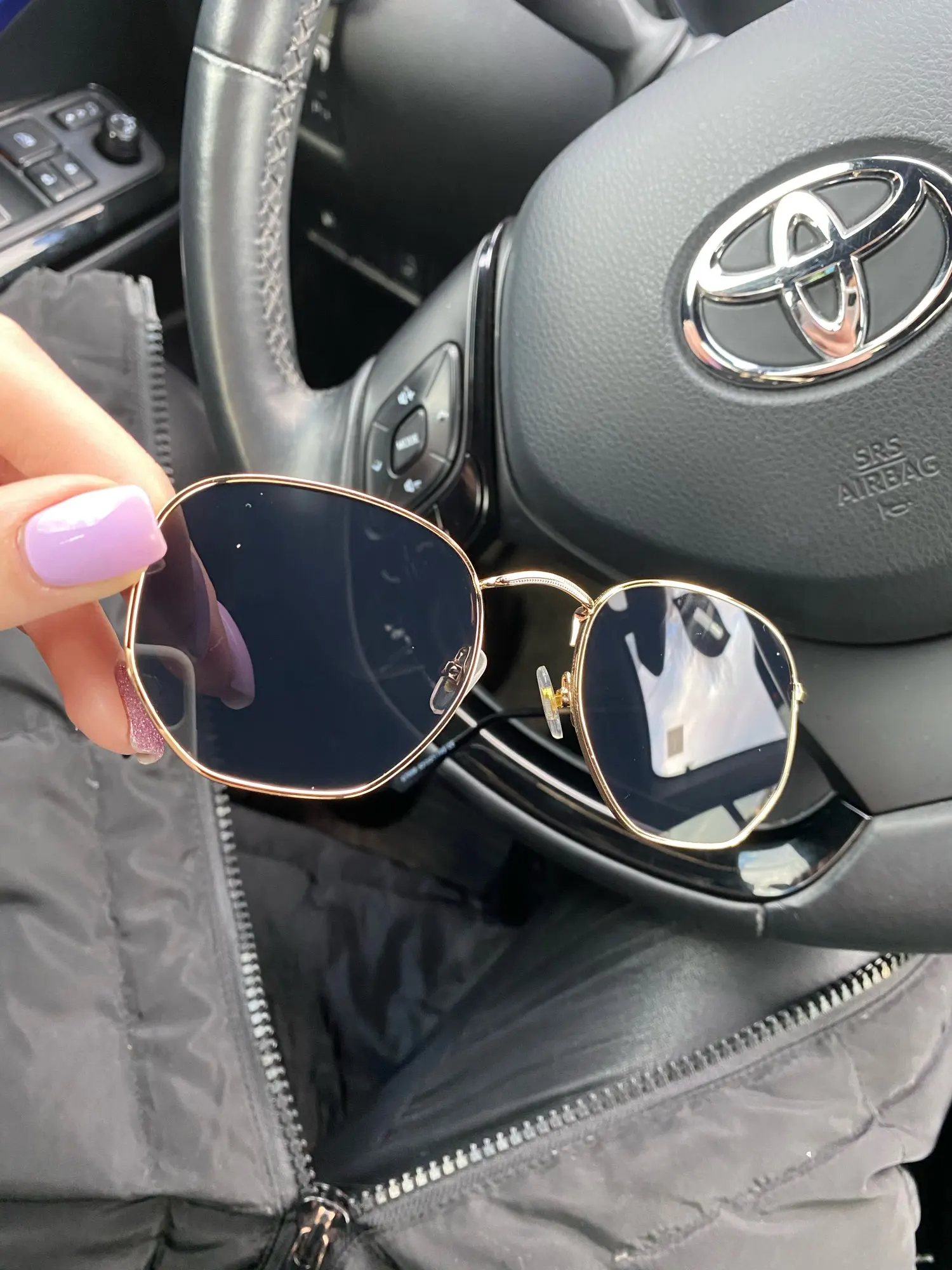 Очки понравились. Цвет оправы золото, без дешевой красноты. Очень понравилось, что без фейковых надписей, хотя по форме напоминают Ray Ban. На улице поляризация работает хорошо, в помещении нет, но это мне кажется у всех недорогих очков. Пока писала отзыв в кафе бариста попросила сфоткаться очки, чтоб такие найти :-))) .... дала ей ссылку . Кстати, пришли быстро