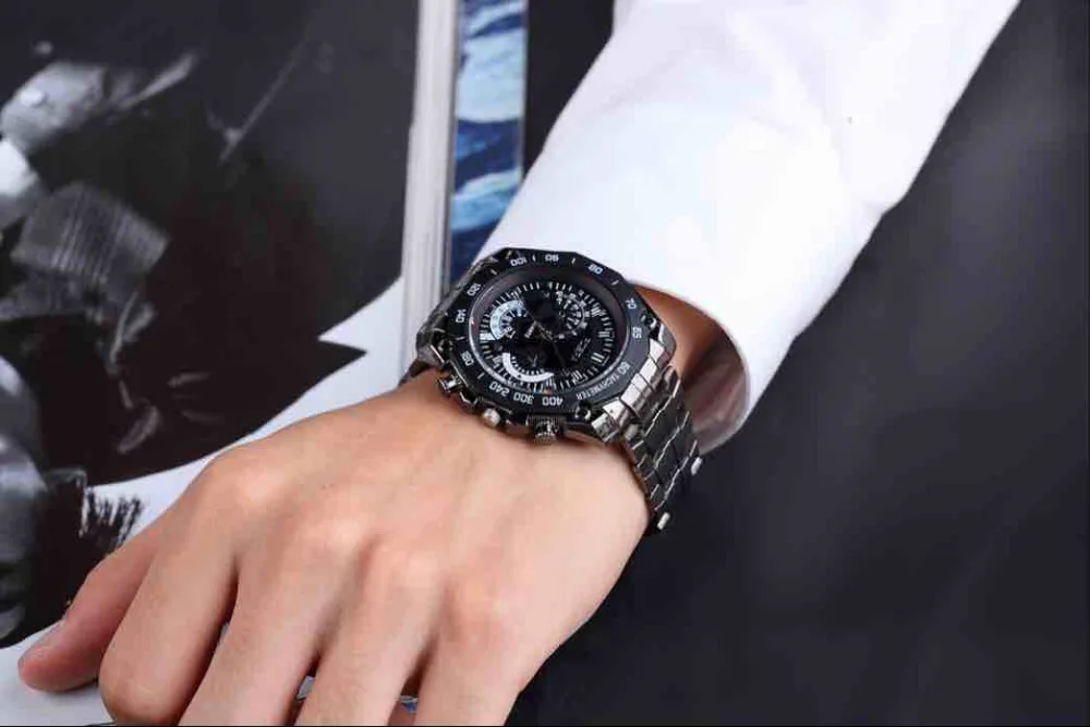 Мужские кварцевые часы полностью стальные горячая распродажа Роскош...