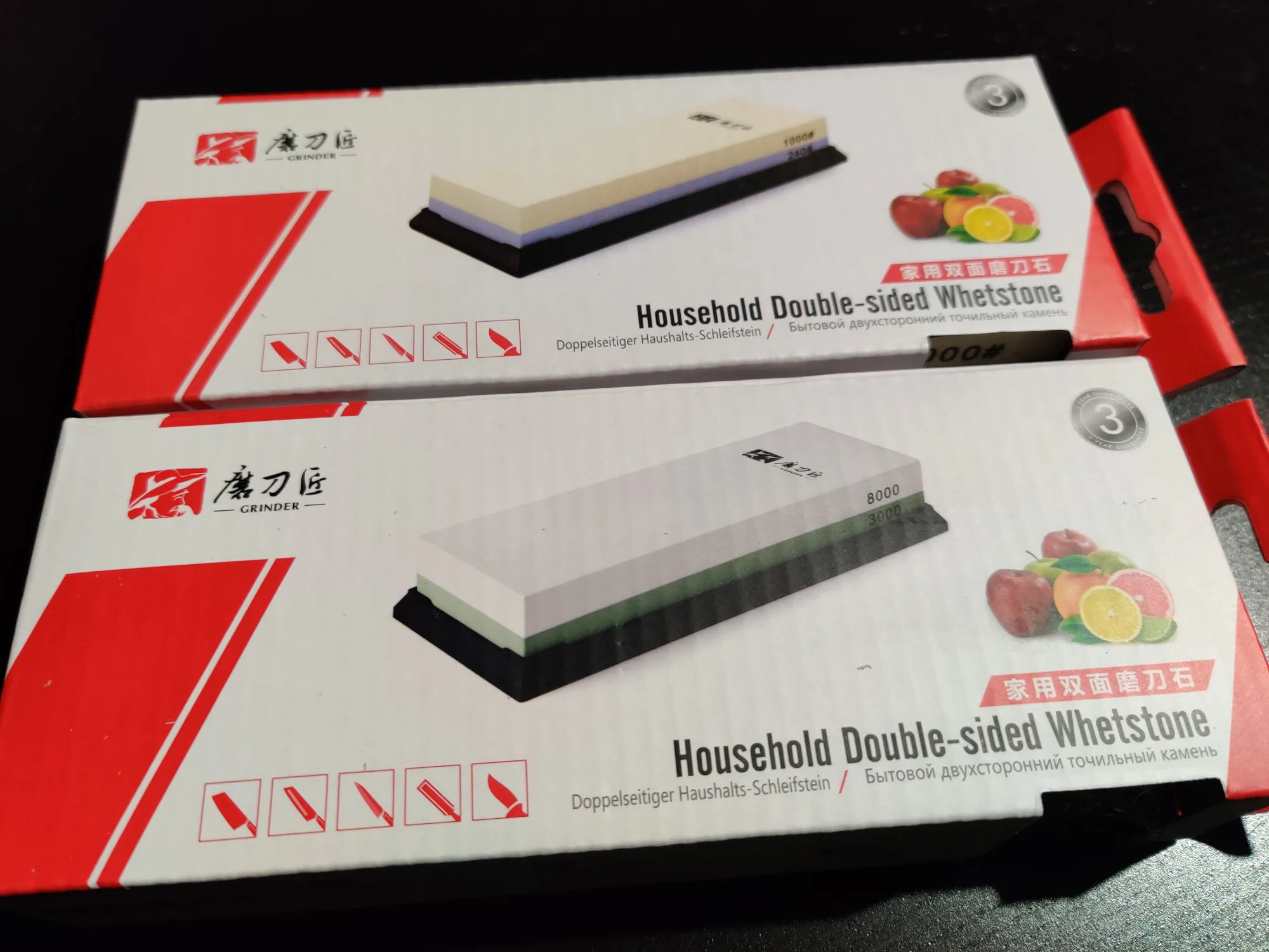 Отличные точильные камни по цене. Я пользуюсь ими много лет. Я только хочу, чтобы камень 3000/8000 был тяжелее, так как он изнашивается быстрее, чем другие камни. Я рекомендую этого продавца. Очень безопасная упаковка и быстрая доставка.