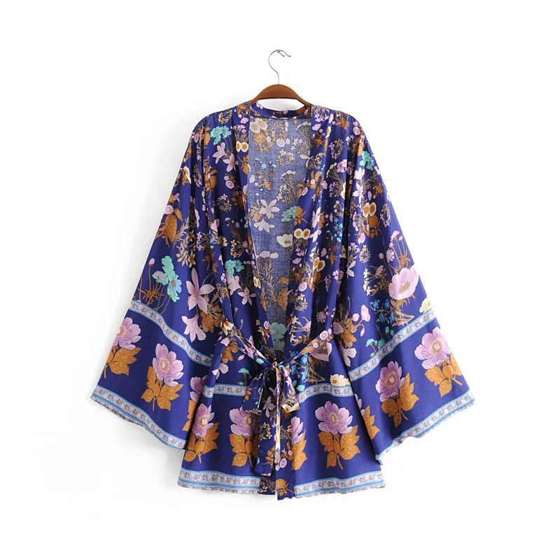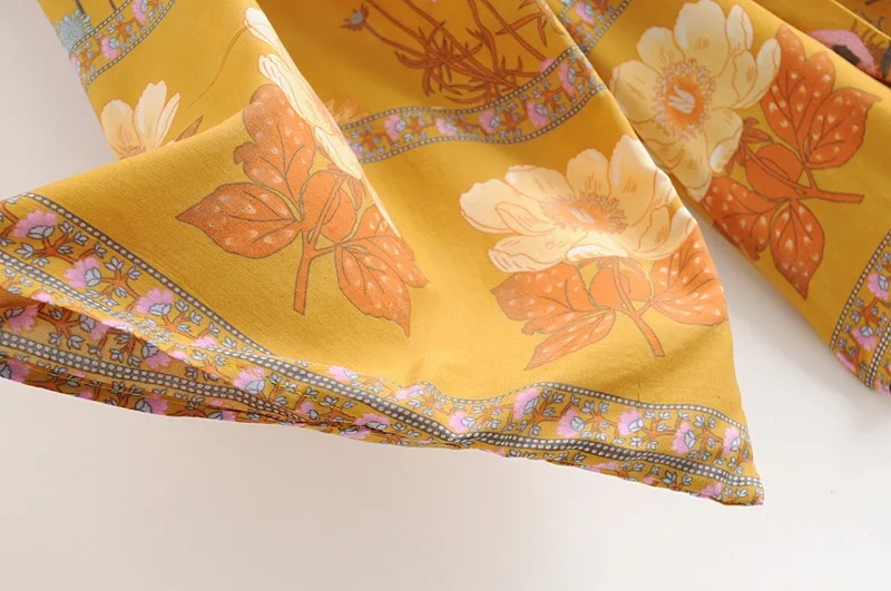 Женское кимоно с цветочным принтом, желтый кардиган средней длины с V-образным вырезом и бантом на поясе