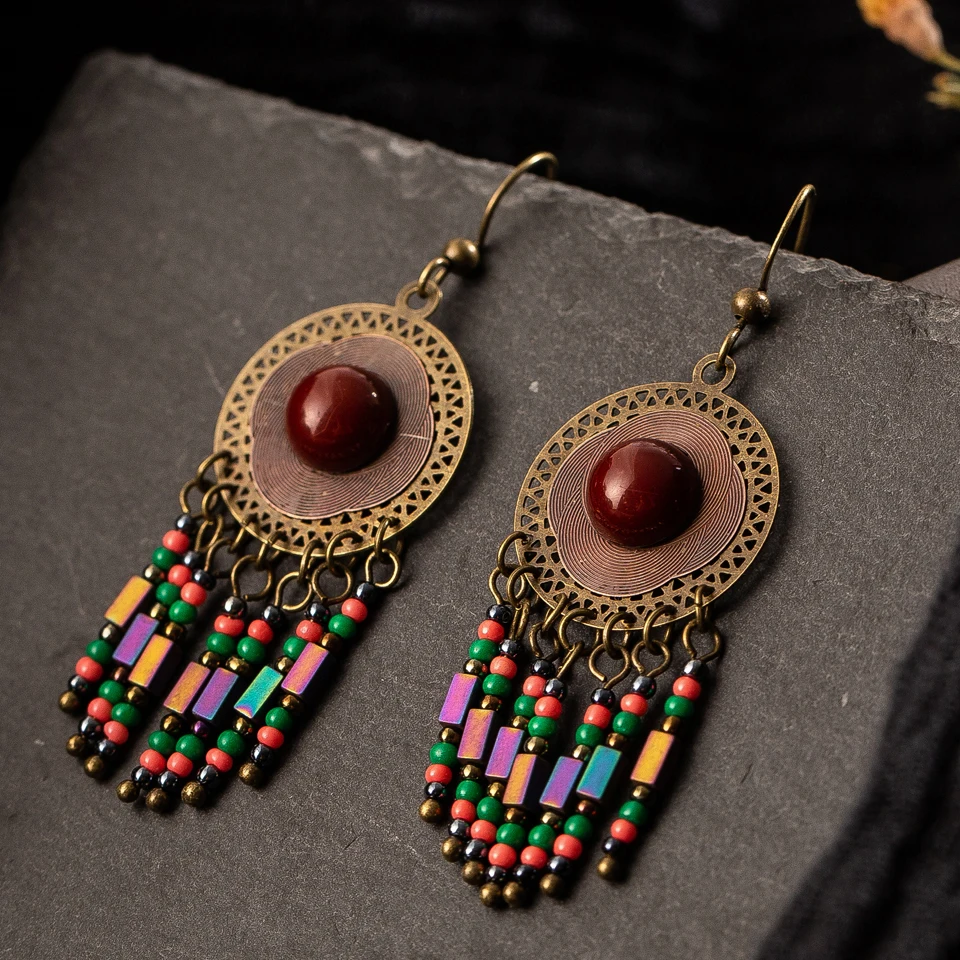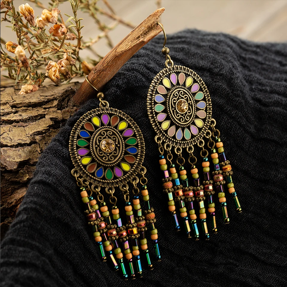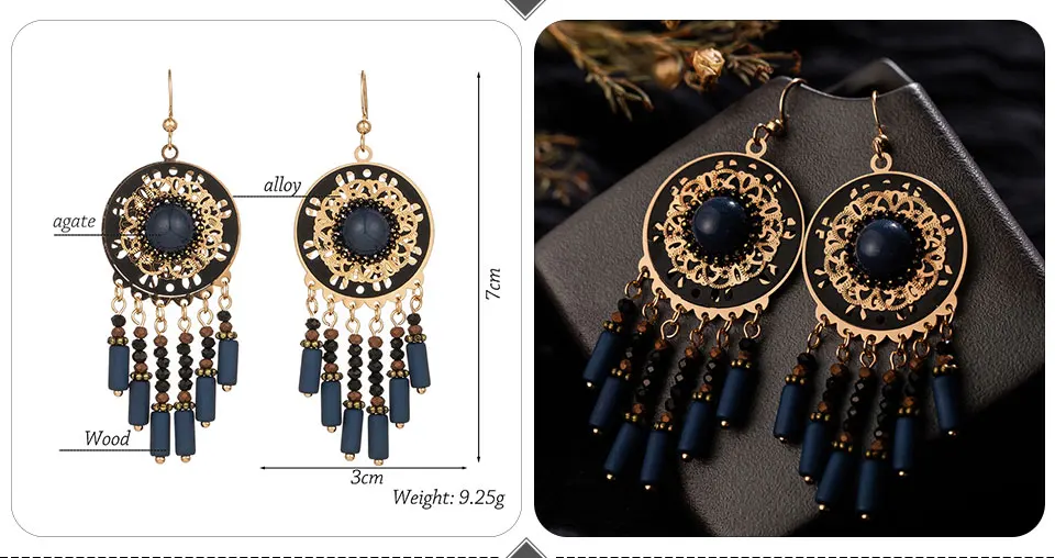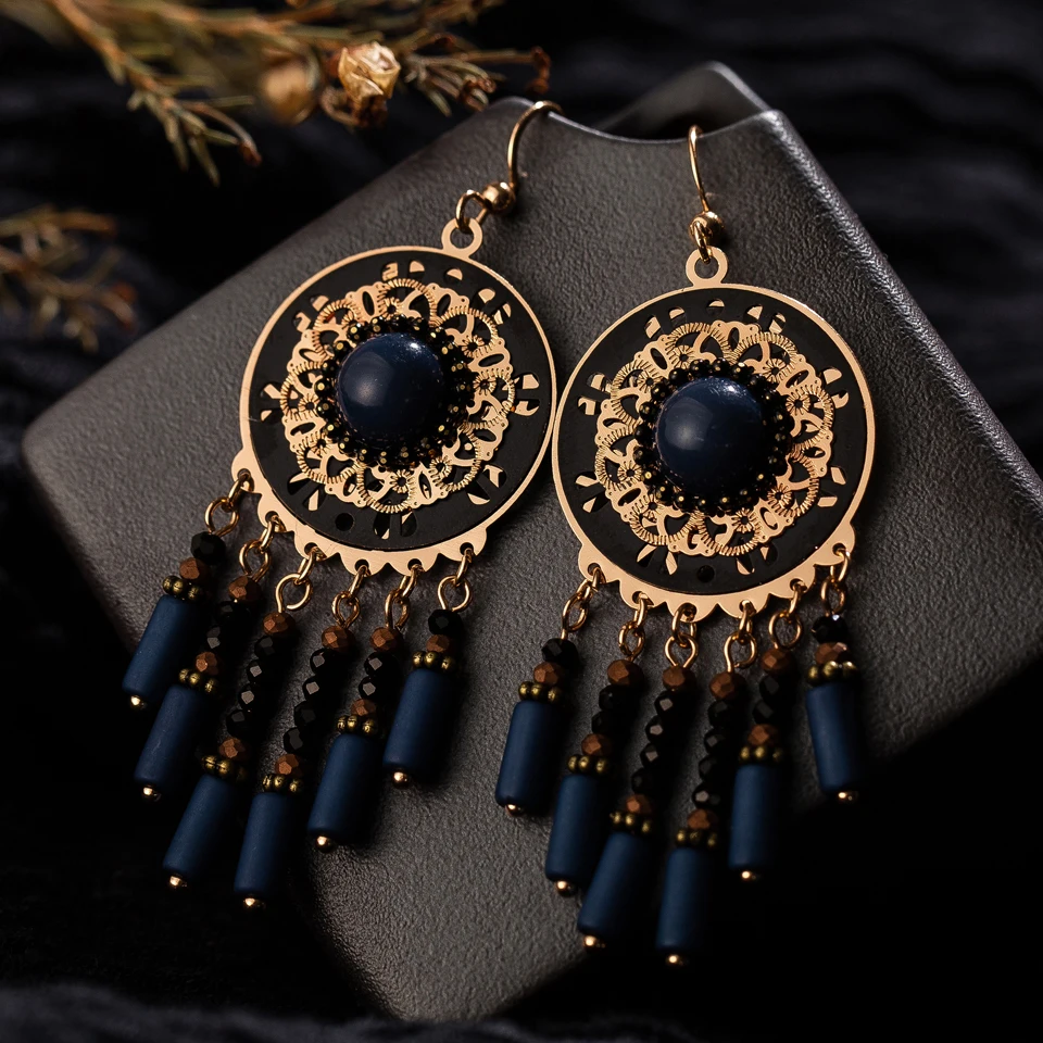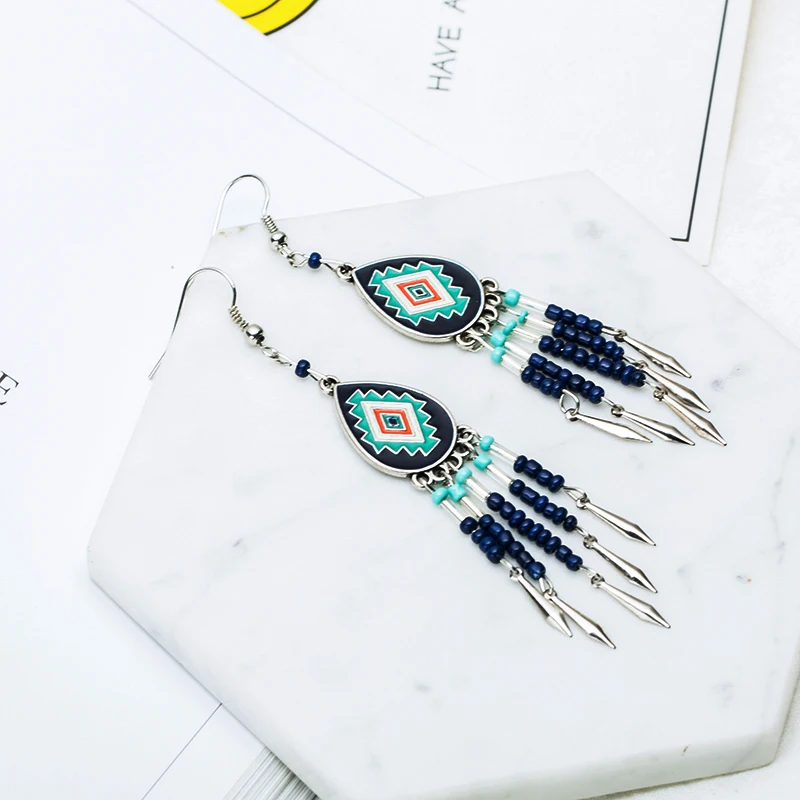 Винтажные этнические Бохо большие синие длинные висячие серьги с кисточками для женщин модные Висячие индийские ювелирные изделия подарочные аксессуары Орнамент