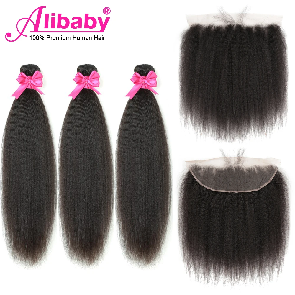 Бразильские пучки волос с фронтальными кудрявыми прямыми волосами Yaki, пряди человеческих волос с фронтальными 30 дюймовыми пучками с застежкой
