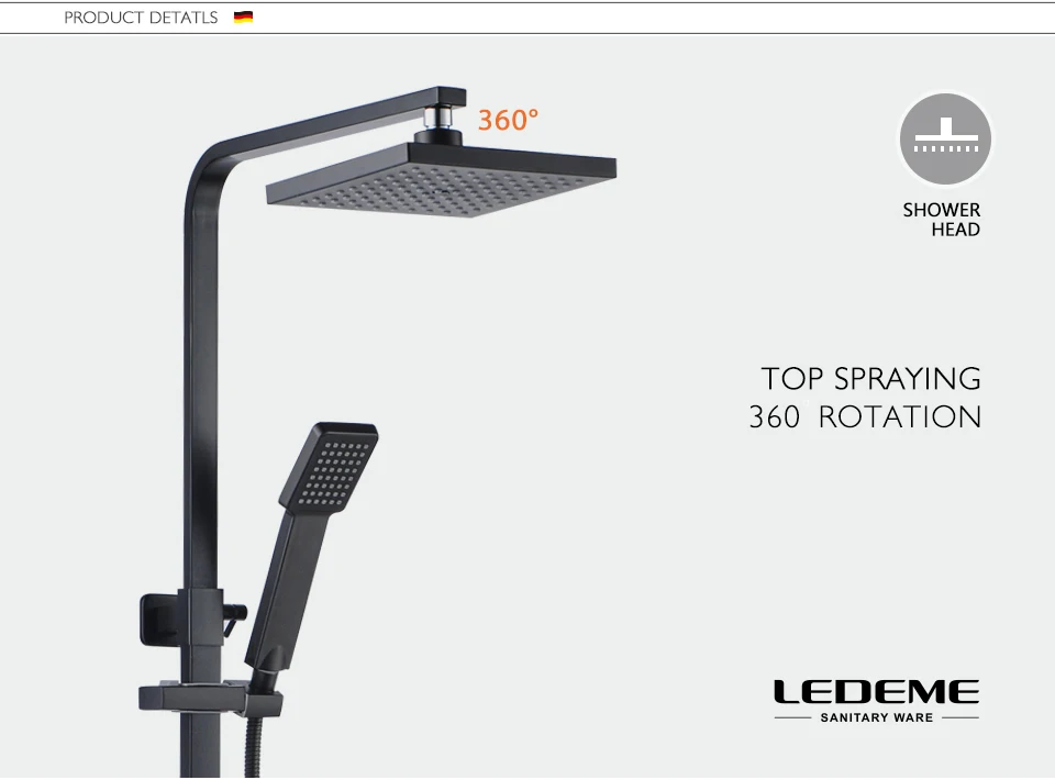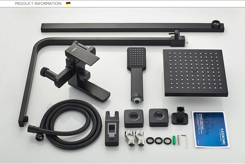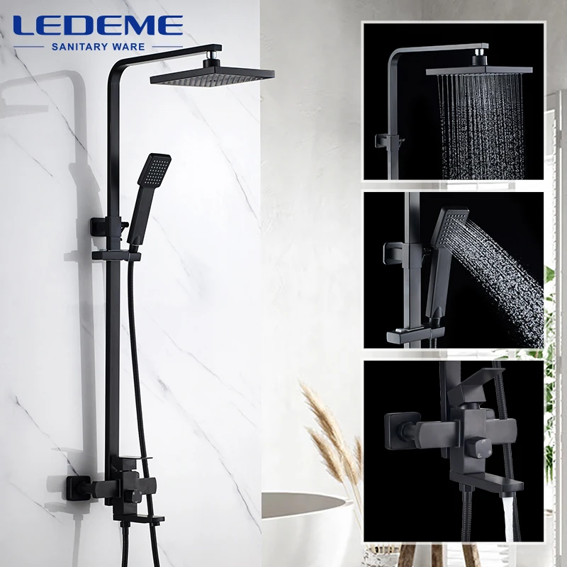 Набор смесителей для душа LEDEME L72433B, черный дождевой распылитель, настенный кран для горячей и холодной воды, L72433B