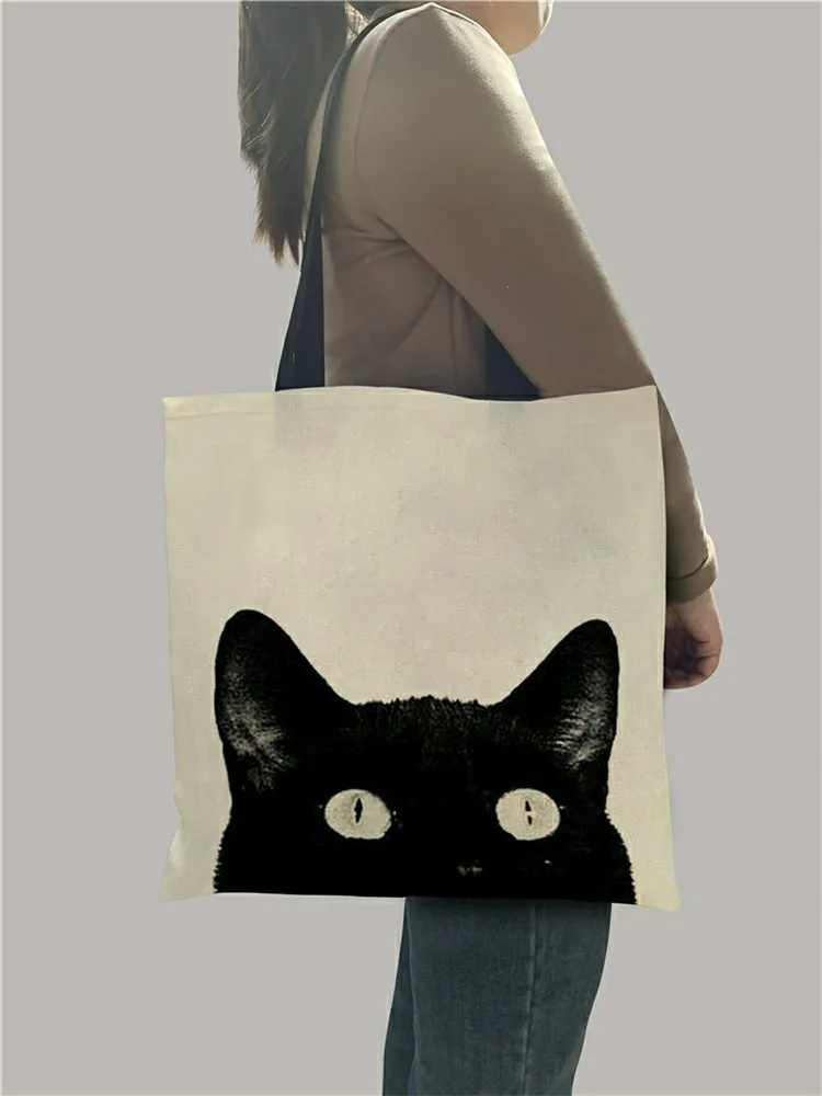SY0114 милые женские многоразовые сумки для покупок большой емкости с рисунком черного кота, школьная сумка для хранения книг через плечо