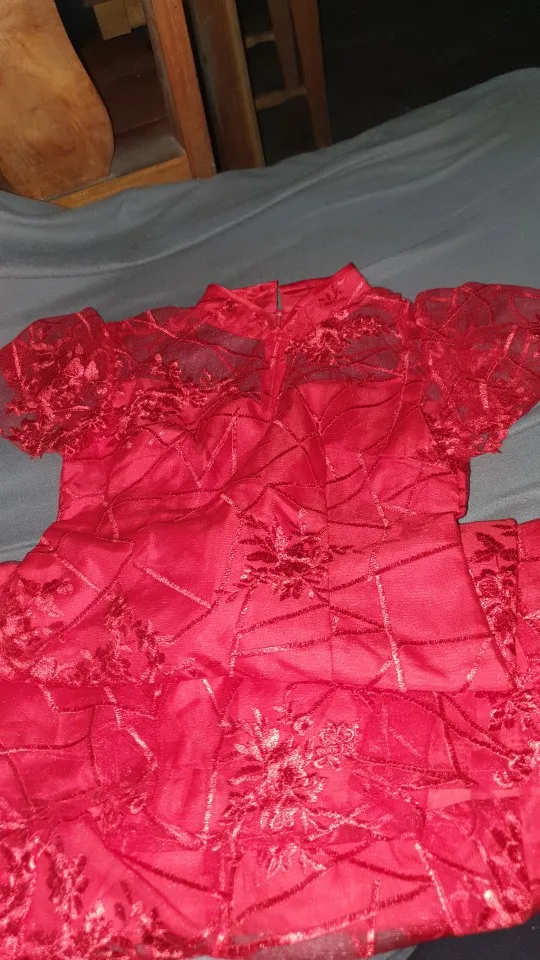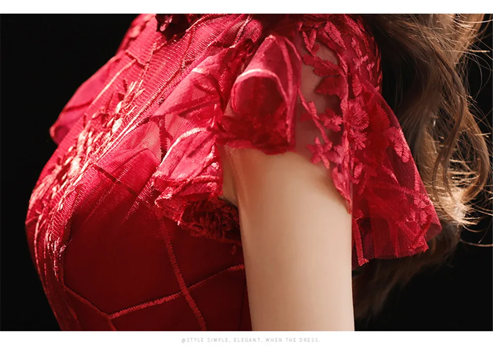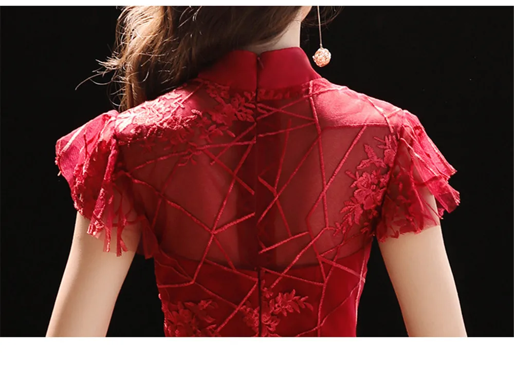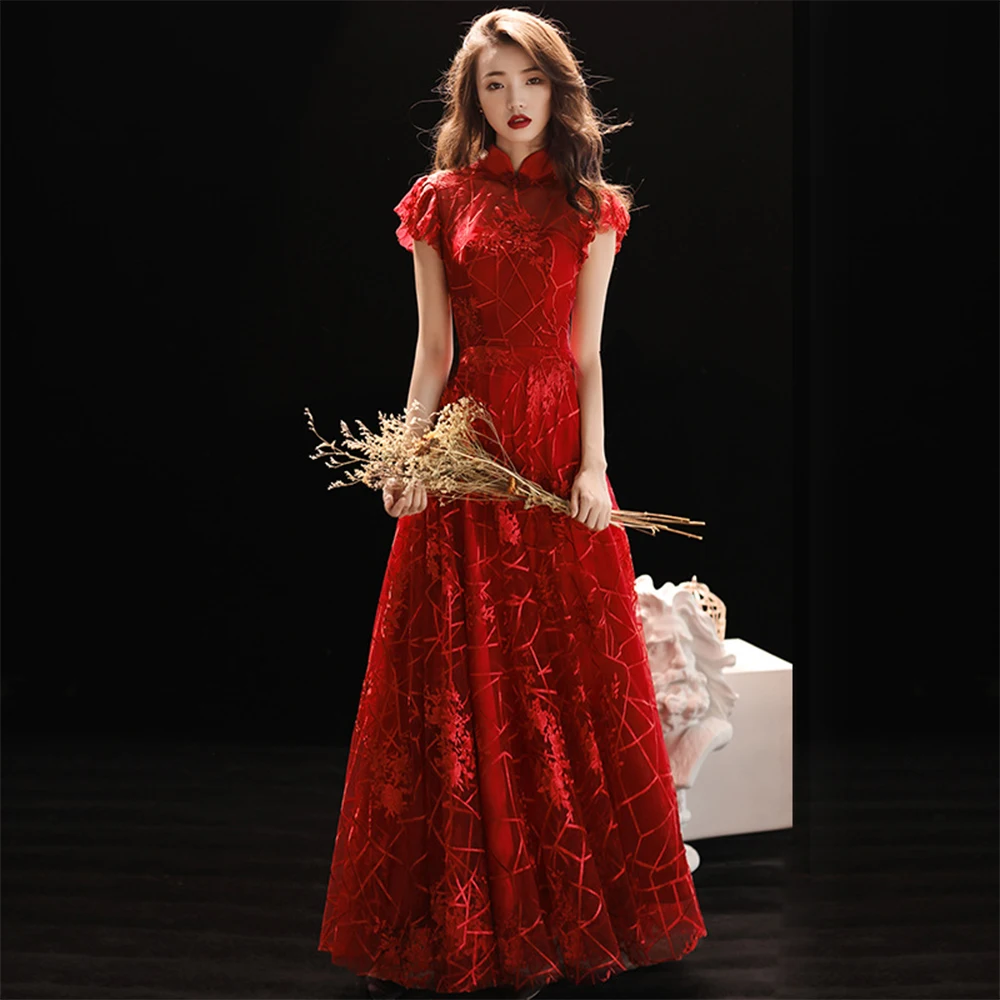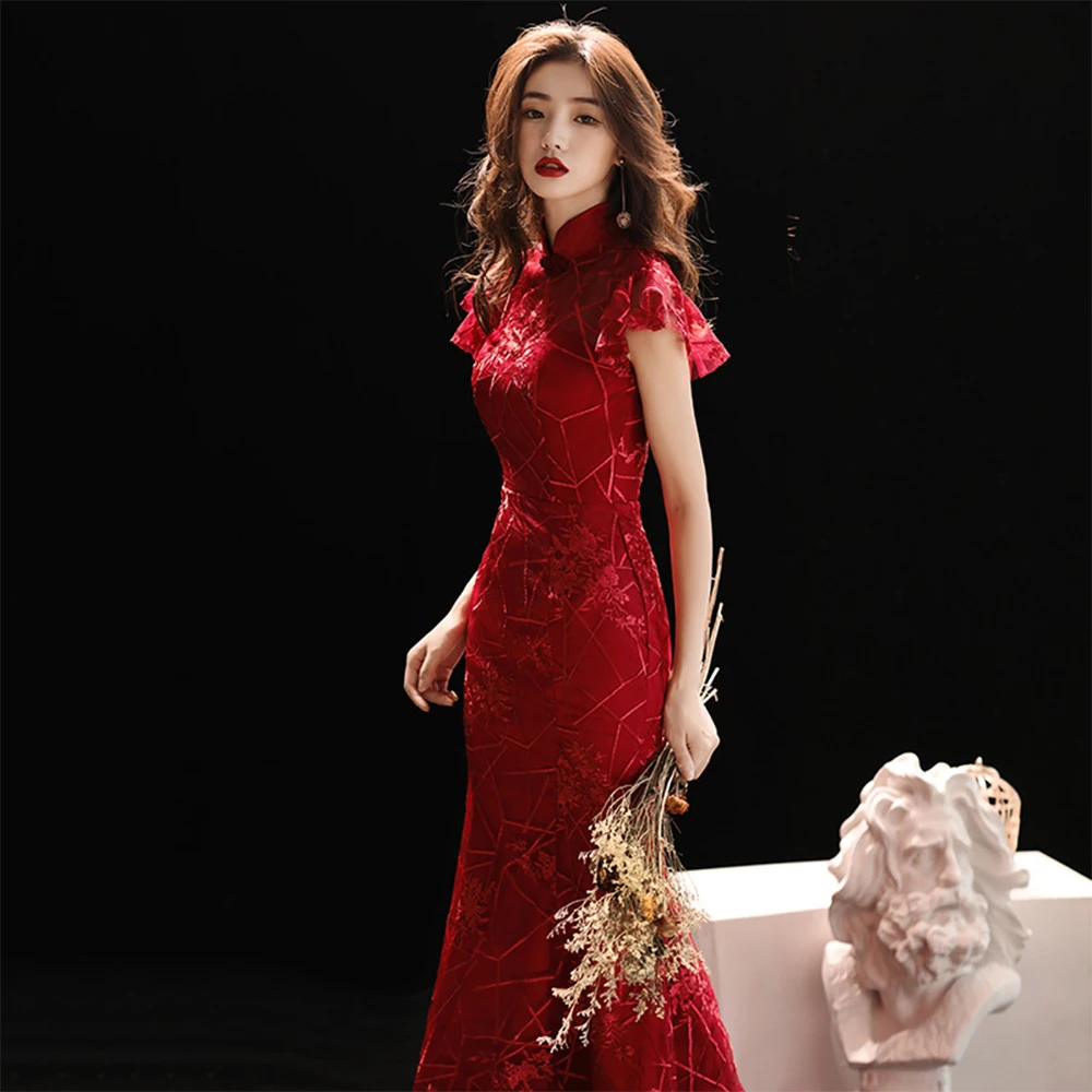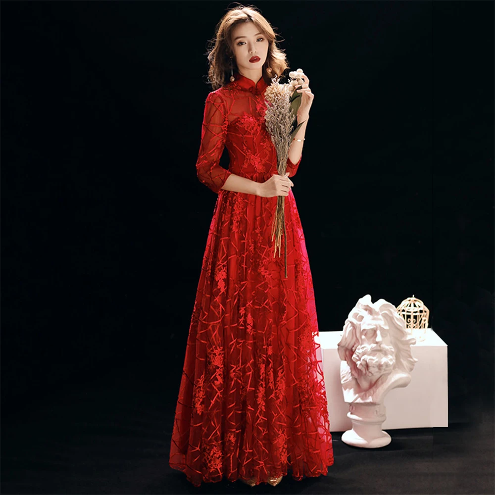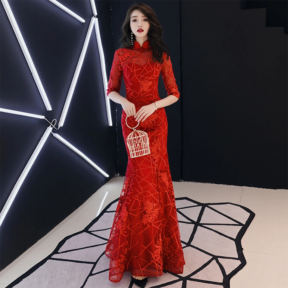 Воротник-стойка женский Ципао красное свадебное платье русалки тонкое элегантное Ципао винтажное на пуговицах большой размер 3XL Макси платье