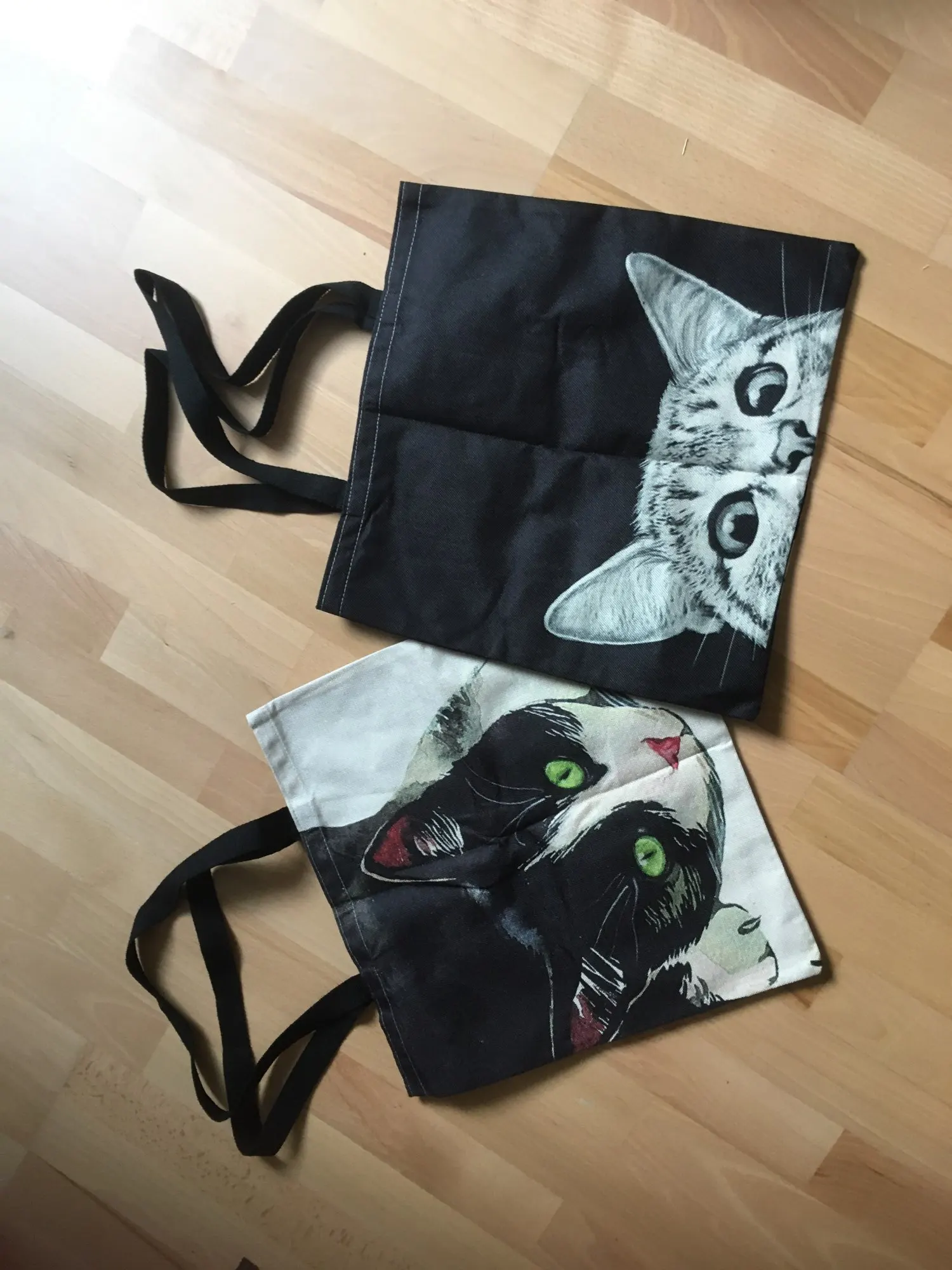 Сумка-тоут женская, складная, с принтом в виде кошки