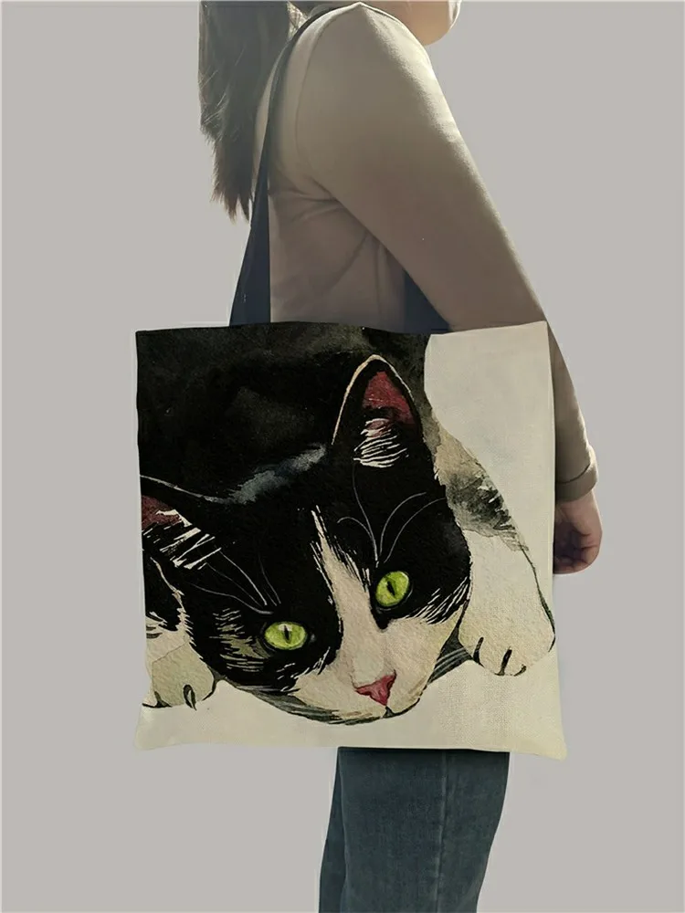 Сумка для покупок B13027 с милым принтом кота и чернилами, женские ...