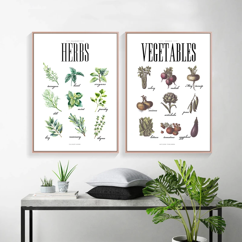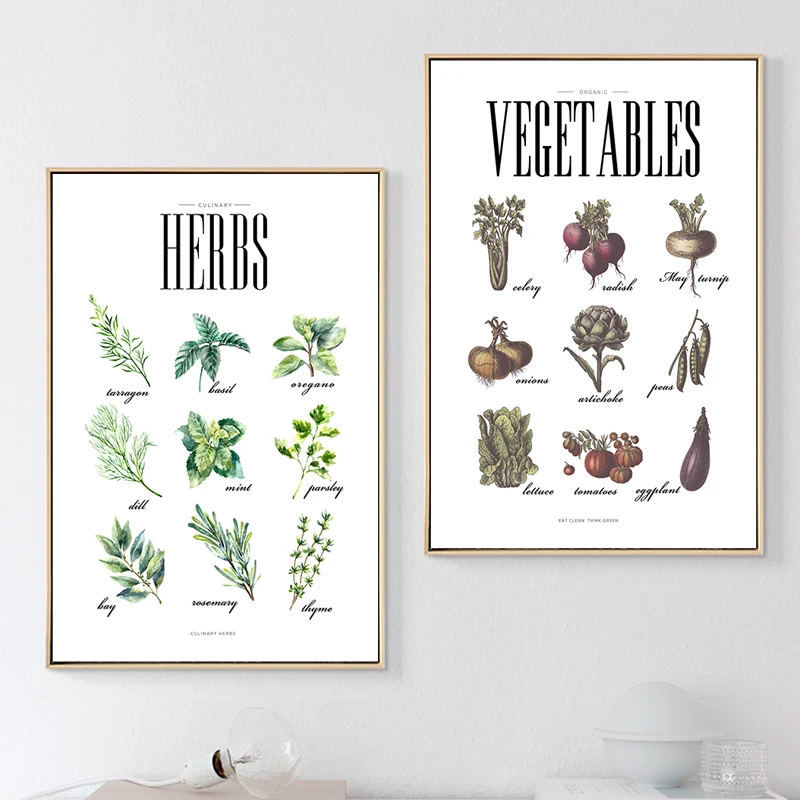 Плакат в скандинавском стиле, принты, минималистичные травы, изображение овощей, Настенная картина на холсте, Модульная картина для гостиной, Современное украшение для дома