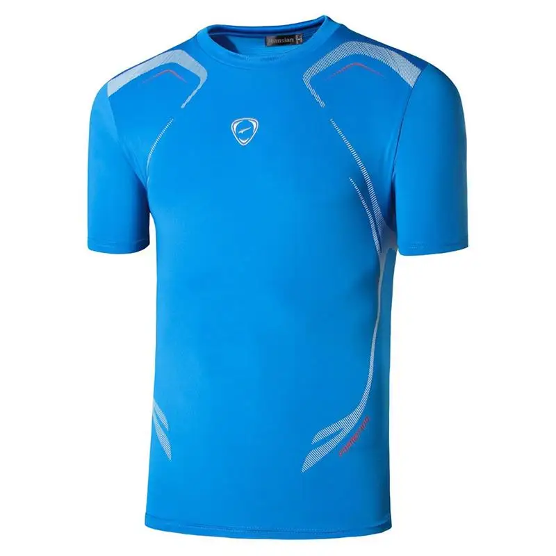 Мужская Спортивная Футболка jeansian, футболка, топы для тренажерного зала, фитнеса, бега, тренировок, футбола, с коротким рукавом, сухая посадка LSL020 Blue2