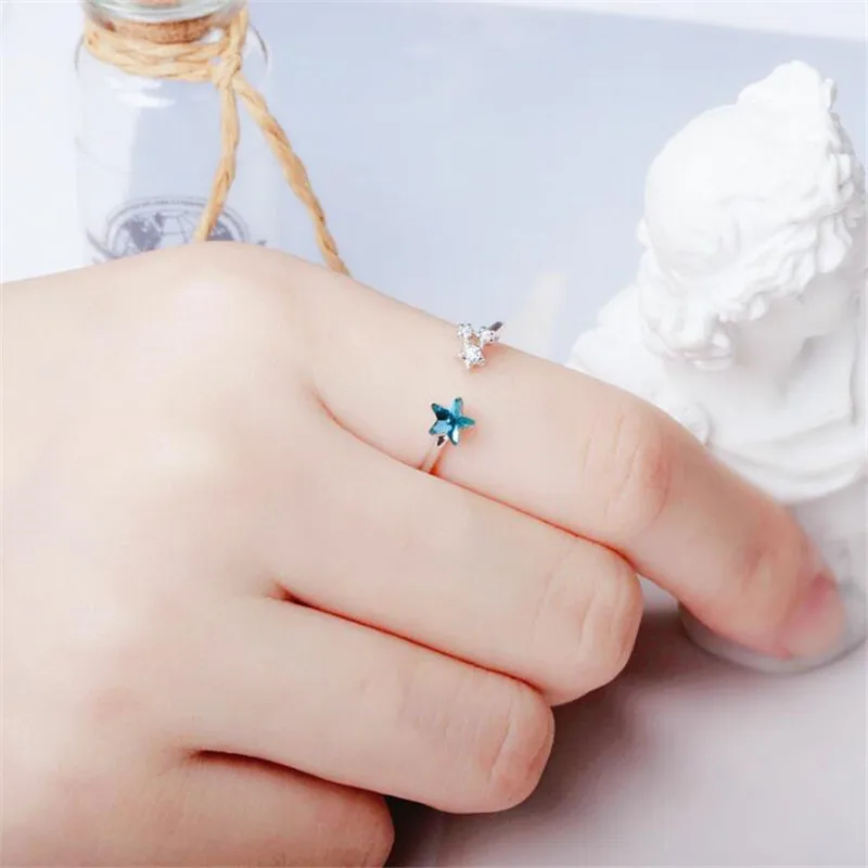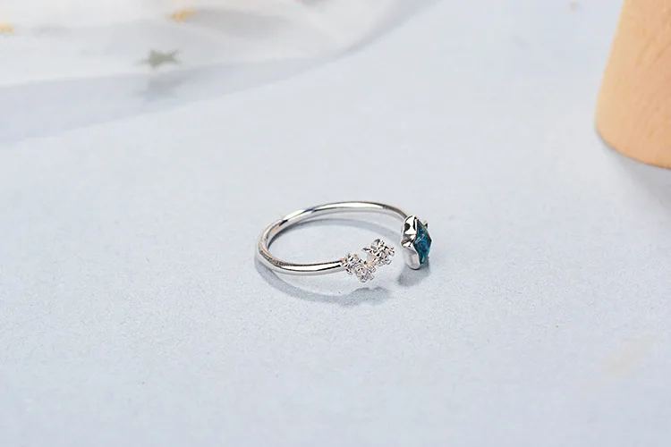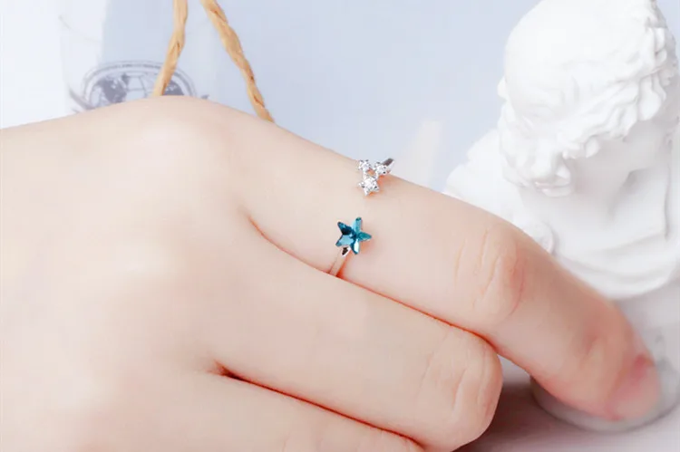 Новое Изысканное красивое свежее синее кольцо со звездой 925 серебряные ювелирные изделия Индивидуальные милые Простые открытые кольца с кристаллами R129