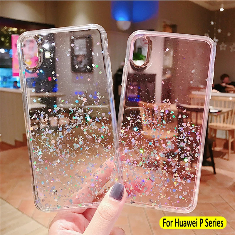 Чехол для Huawei P 30 Pro, блестящие чехлы из серебристой фольги со звездами для Huawei P20 P30 Lite Pro Light P20Pro, блестящий прозрачный чехол из ТПУ