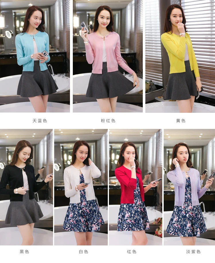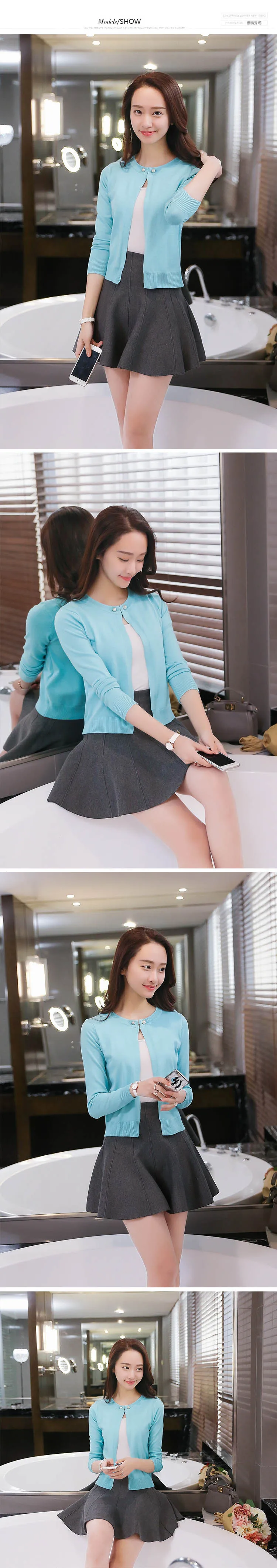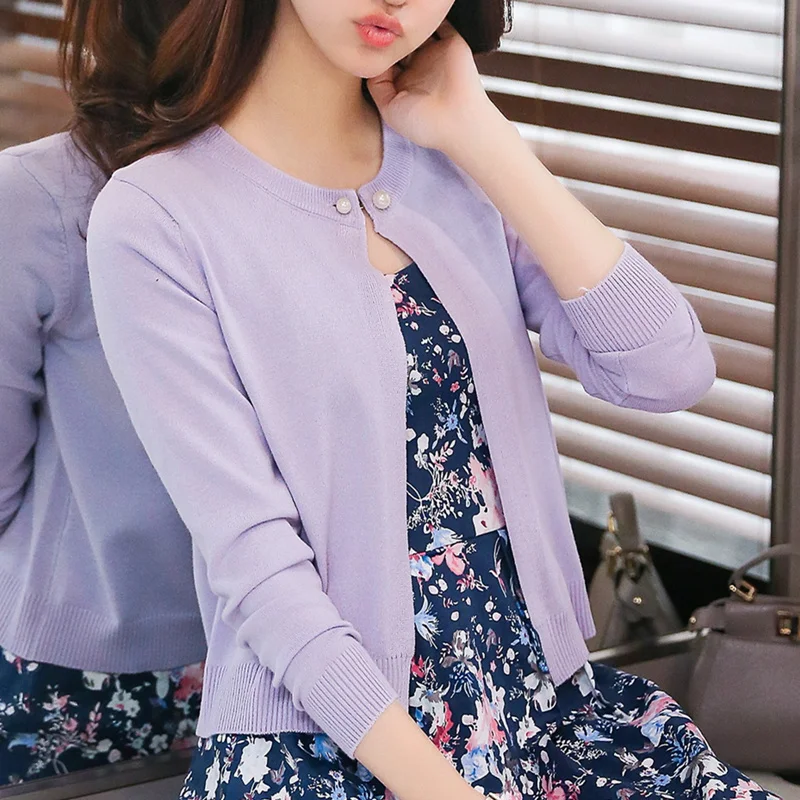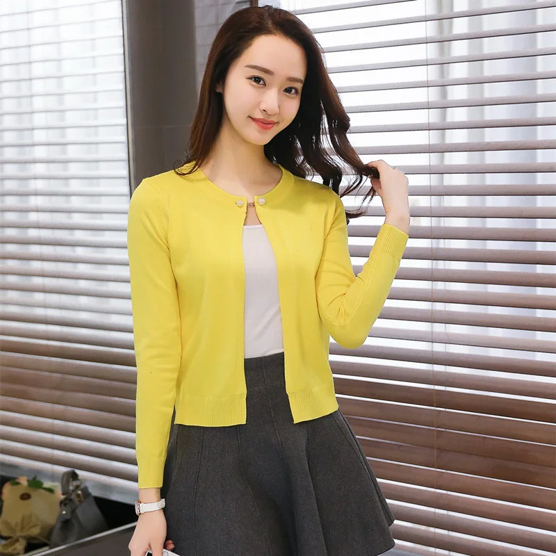 2019 Новый однотонный Модный женский свитер женский кардиган тонкая верхняя одежда Летний короткий дизайн вязаный свитер с длинным рукавом