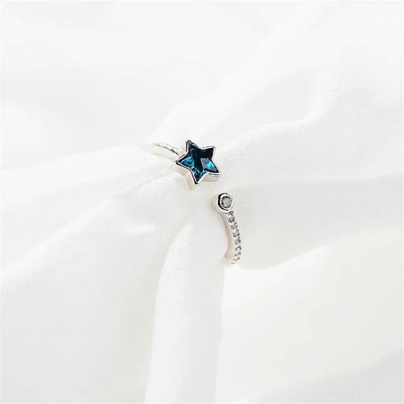Кольцо Открытое из серебра 925 пробы, глубоководное синее, с пятиконечной звездой, R044