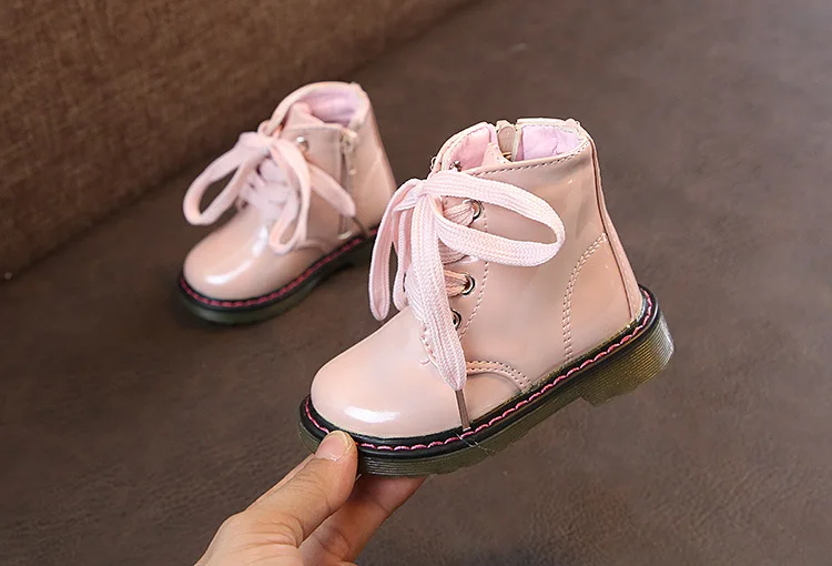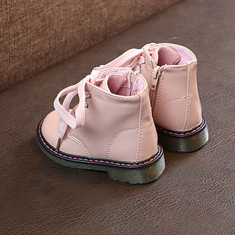 Детские ботинки для девочек, зимние ботинки из искусственной кожи, ботинки мартинсы на молнии на лодыжке, модная обувь для малышей, осенне-зимняя детская обувь для девочек