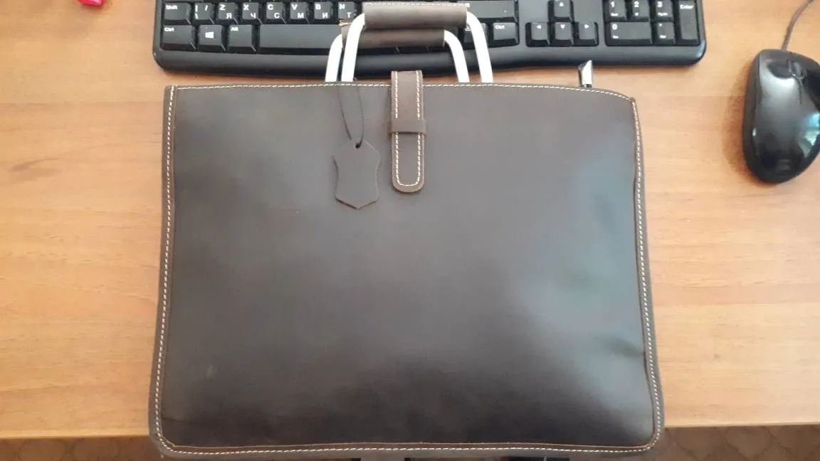 Сумка хорошая прошита отлично, замки железные, ручки алюминиевые. Формат А4 входит хорошо, но не жесткая папка. Внутри всё сделано тоже на отлично, кармашки замок на отделении, и отдельное отделение без замка. Не большой запах прессованной кожей