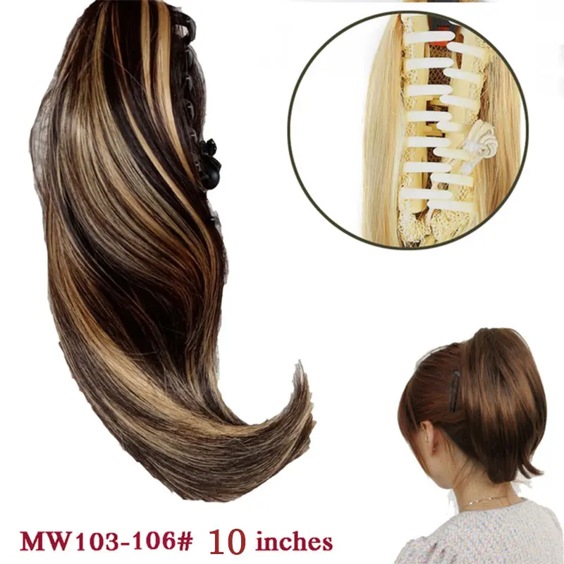 Кудрявые высокотемпературные синтетические волосы, 8 цветов, 10 дюймов, хвост шиньон блонд, серая заколка для наращивания волос, когтеобразный конский хвост