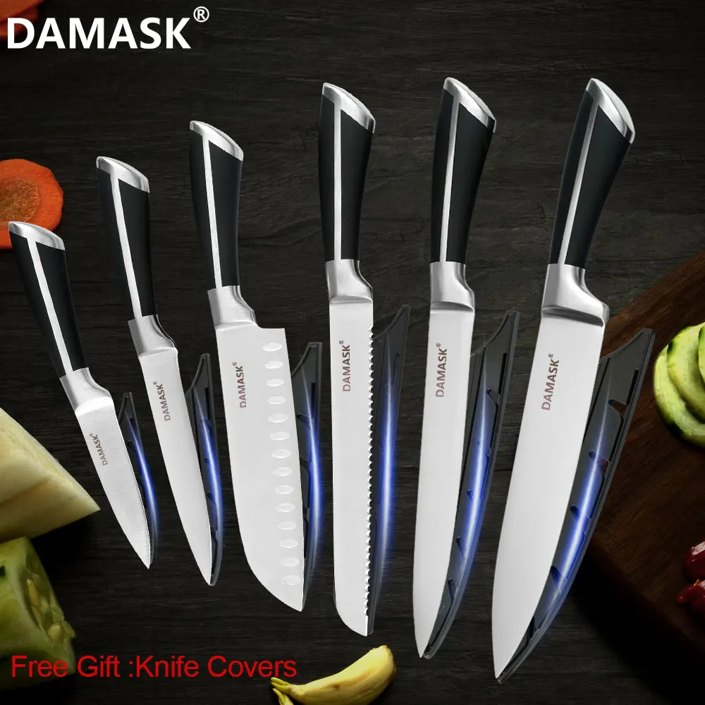 Набор кухонных ножей Damask 3Cr14 из нержавеющей стали, высокое качество, резак, ручка из пом, чехлы для ножей в подарок