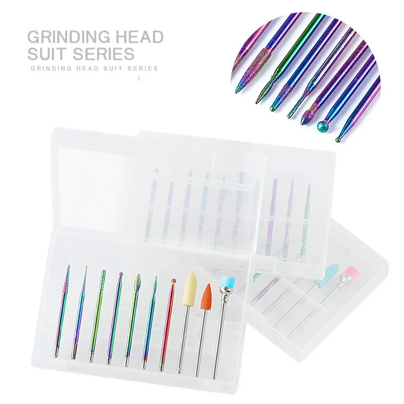 Электрическая дрель для маникюра и педикюра, 10 шт., набор сверл из радужной вольфрамовой стали, шлифовальная насадка для ногтей, аксессуары для дизайна ногтей, инструменты для ногтей