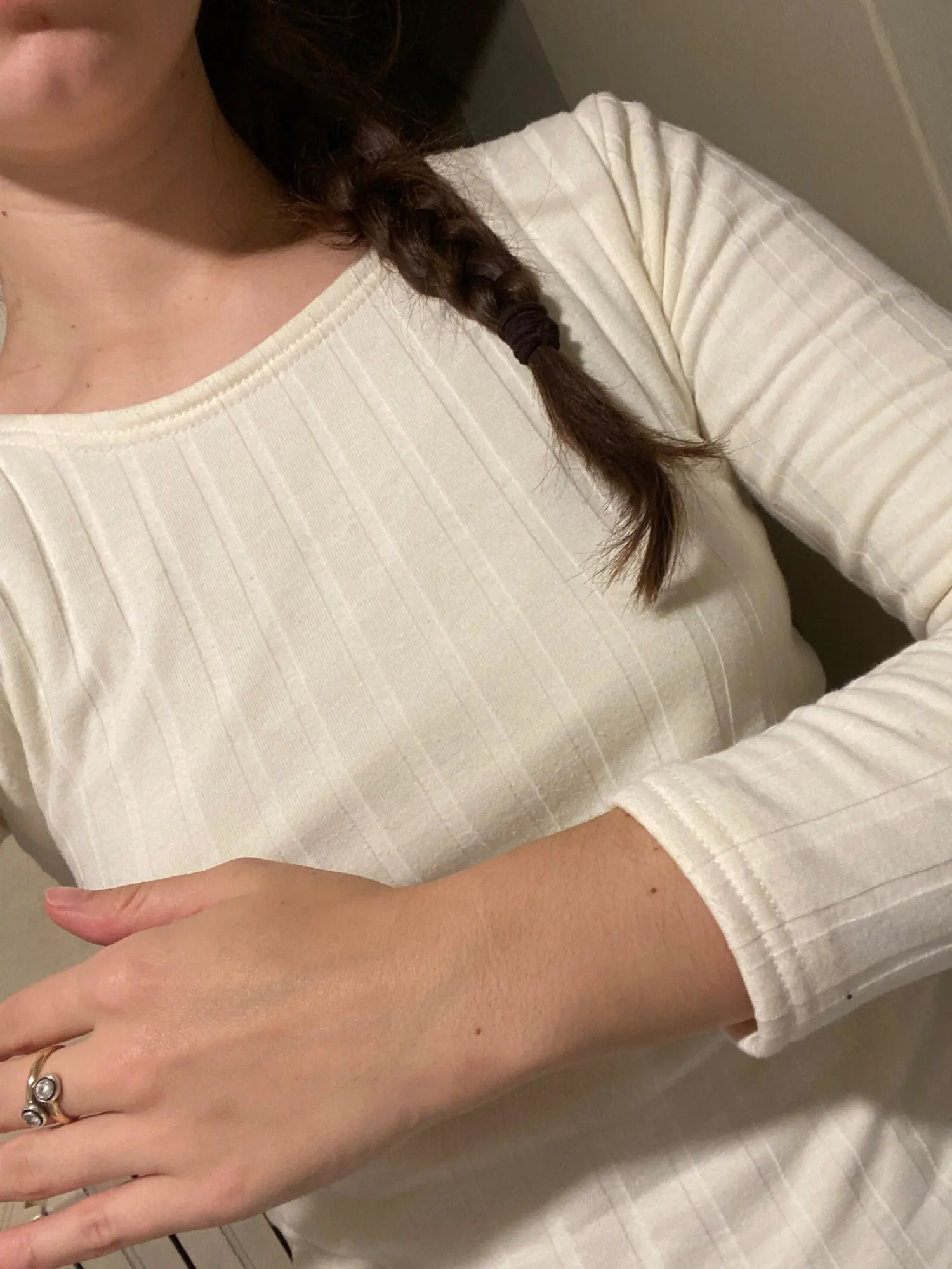 Дуже м'яка і супер комфортна. Брала хл на 44 розмір, щоб було вільно: те, що треба. Рукава ніби ок, але на зріст 167 могли б і довші бути. Колір не білий, а скоріше молоко. Дуже задоволена комфортністю і м' якістю виробу. До тіла дуже приємно.