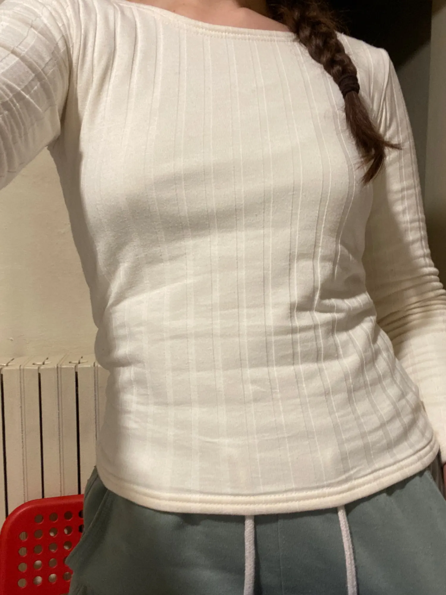 Мне очень нравится. Очень жарко, с круглым вырезом я могу сочетать его с другими свитерами. Цвет и форма такие же, как на фото. Я запросил на 2 размера больше (я испанский Размер M/L), потому что эти Тепловые/полярные футболки не растягиваются, и я бы хотел, чтобы они были удобны