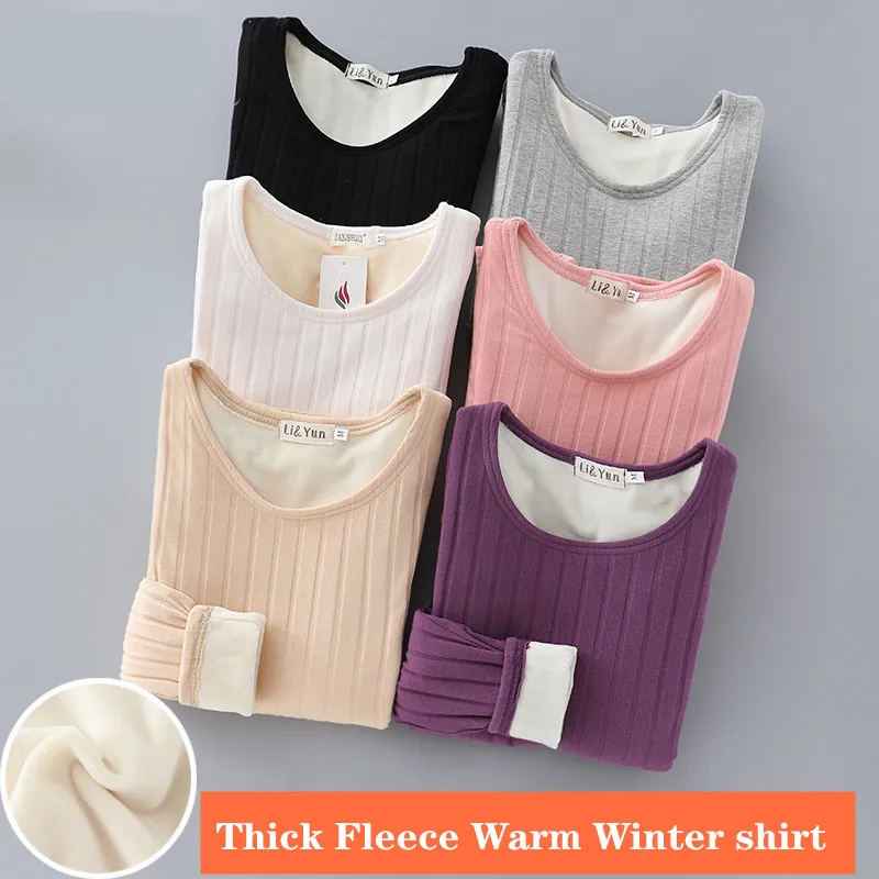 2020 зимняя теплая футболка, толстое флисовое термобелье, хлопковая футболка в полоску с длинным рукавом, супермягкая футболка с круглым вырезом, топ, рубашка