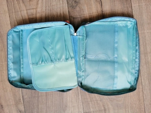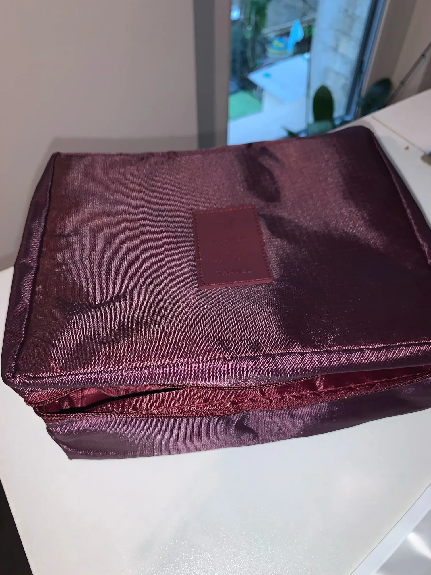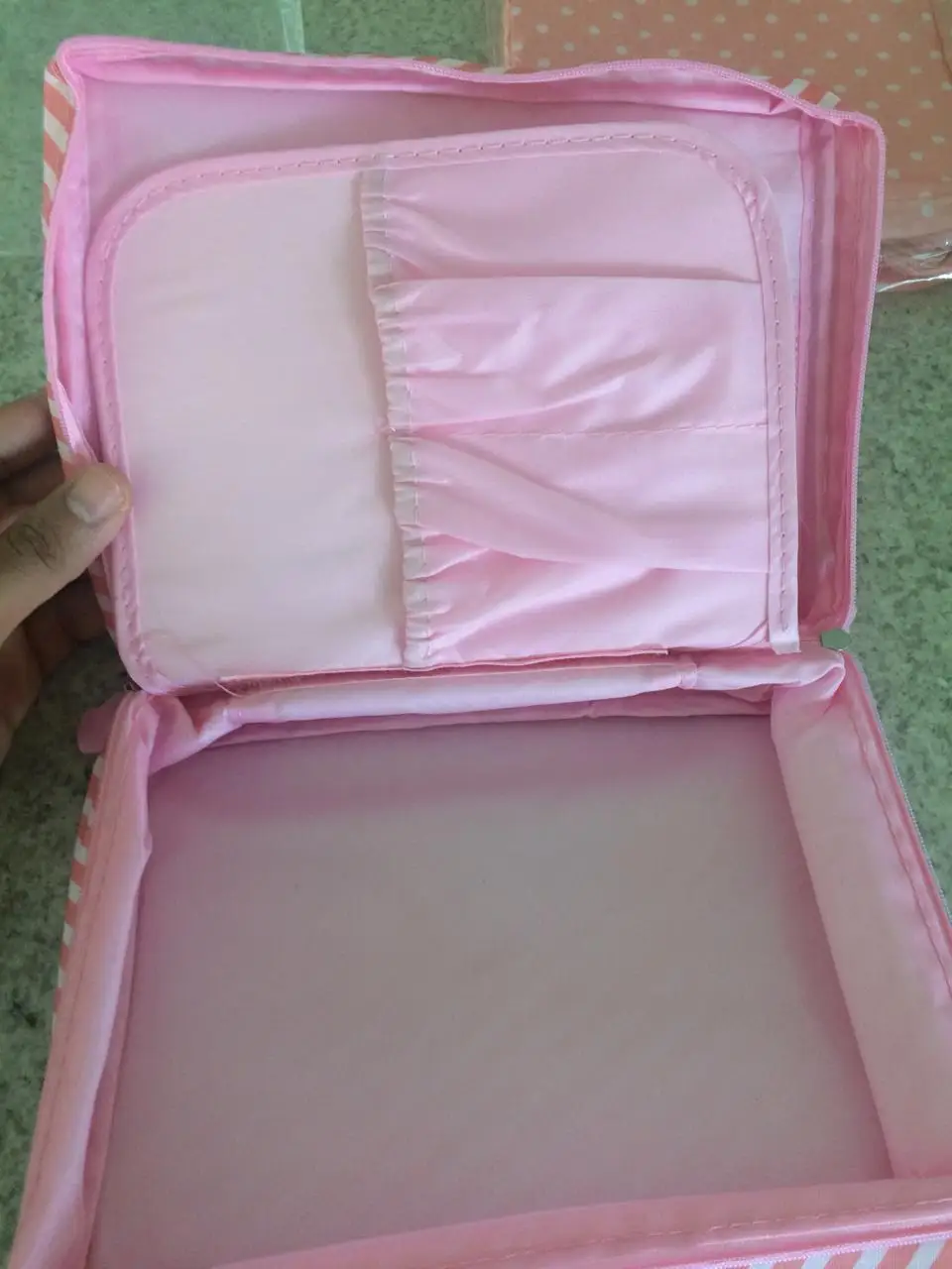 Очень красивый и просторный, идеально подходит для основного набора для макияжа. У него были свободные нитки, но беспокоиться не о чем.