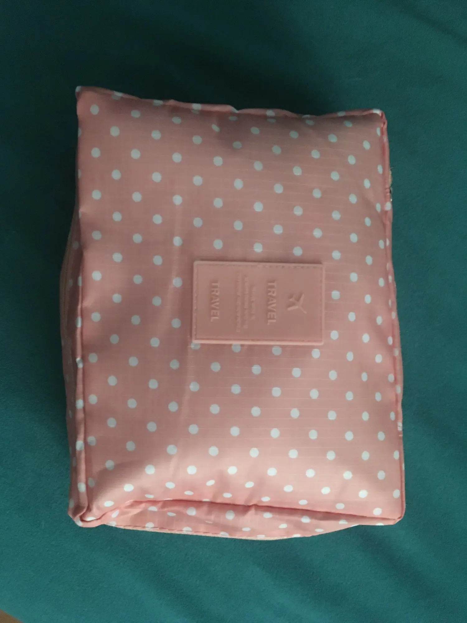 Прибыл в Великобританию около 3 или около того недель, очень быстро для доставки aliexpress! Сумка из очень хорошего материала, розовый цвет немного темнее, чем на изображении, но в сумке так много косметики! Мне нравится! Хотел бы я купить раньше.