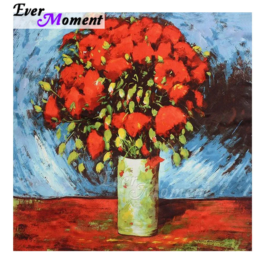 Алмазная живопись Ever Instant 5D, картина Стразы ручной работы, вышивка крестиком с красными цветами, домашняя Алмазная вышивка ASF1793