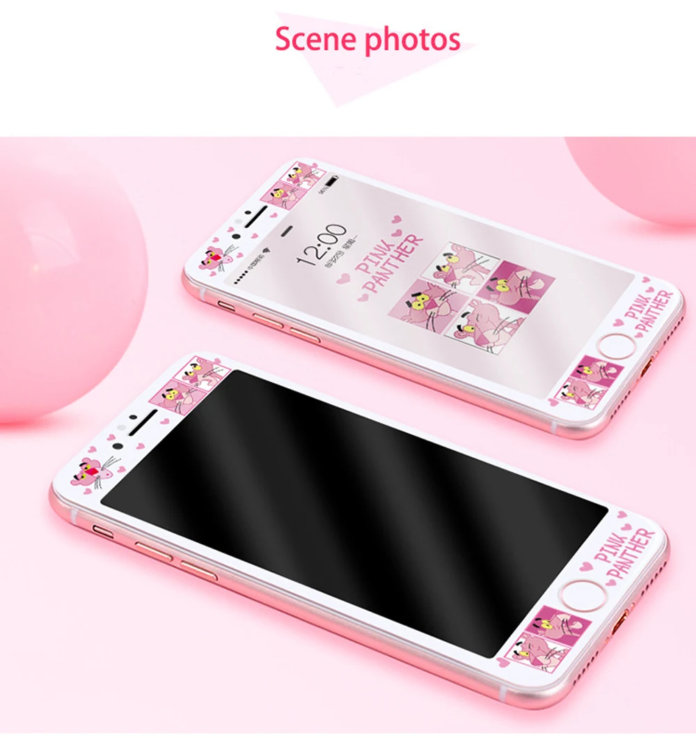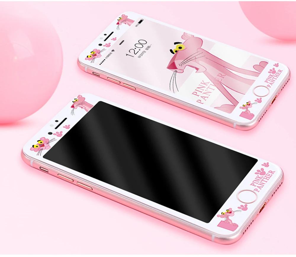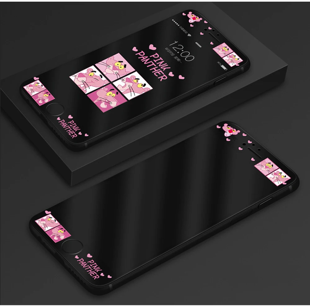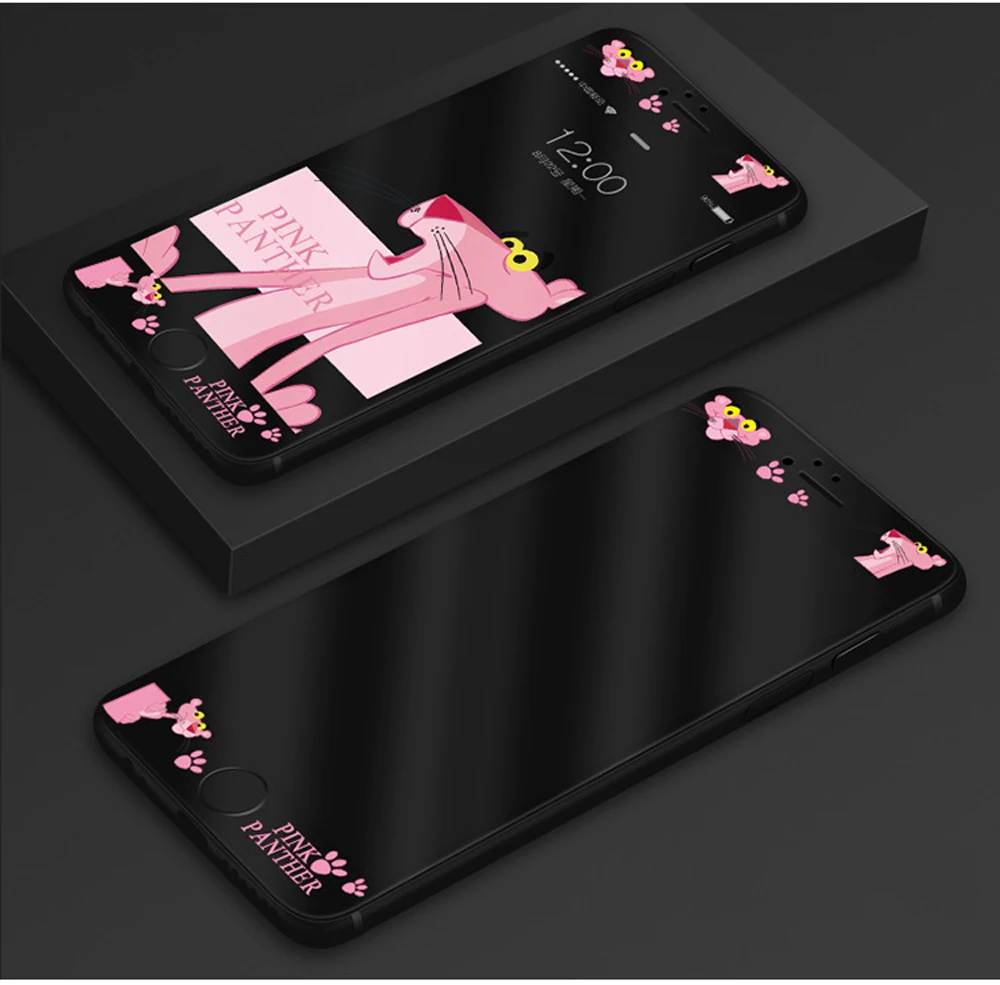 Симпатичная мультяшная Розовая пантера, 4,7 дюйма, закаленное стекло, Защита экрана для iPhone 7 6 8 6s Plus, симпатичная передняя оболочка с животными, чехол