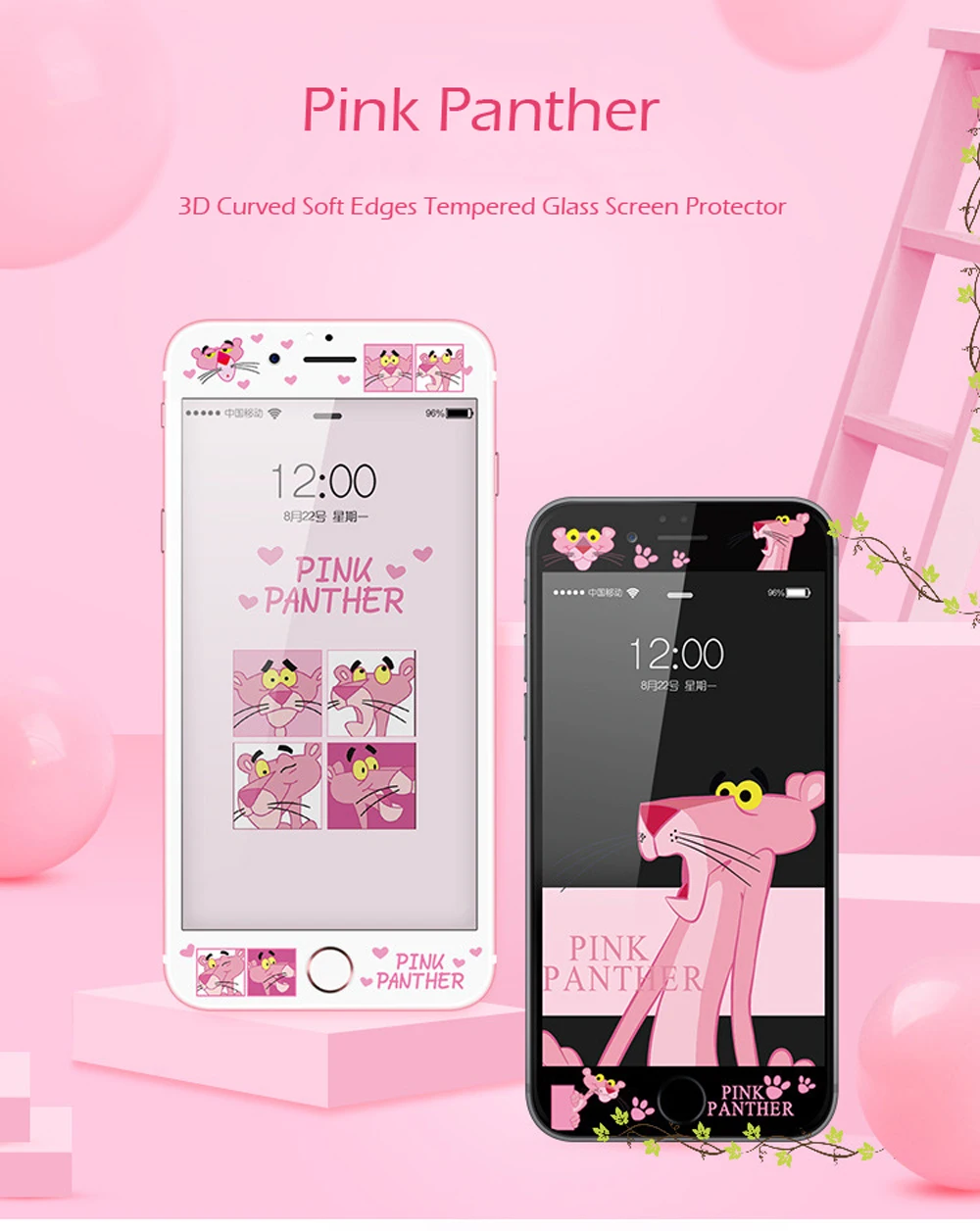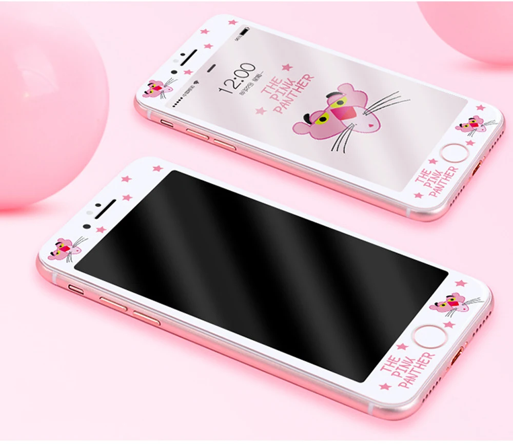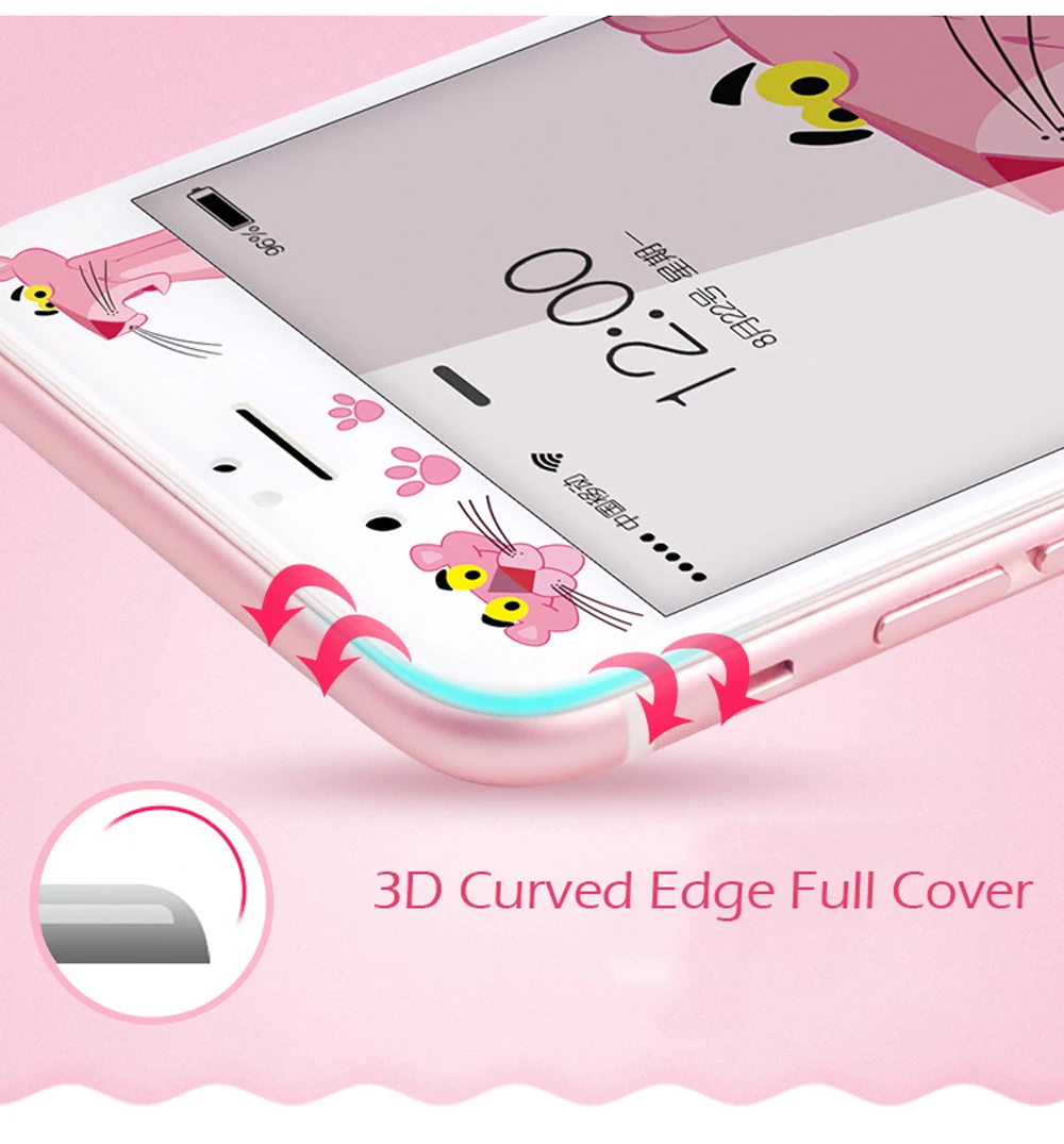 Симпатичная мультяшная Розовая пантера, 4,7 дюйма, закаленное стекло, Защита экрана для iPhone 7 6 8 6s Plus, симпатичная передняя оболочка с животными, чехол