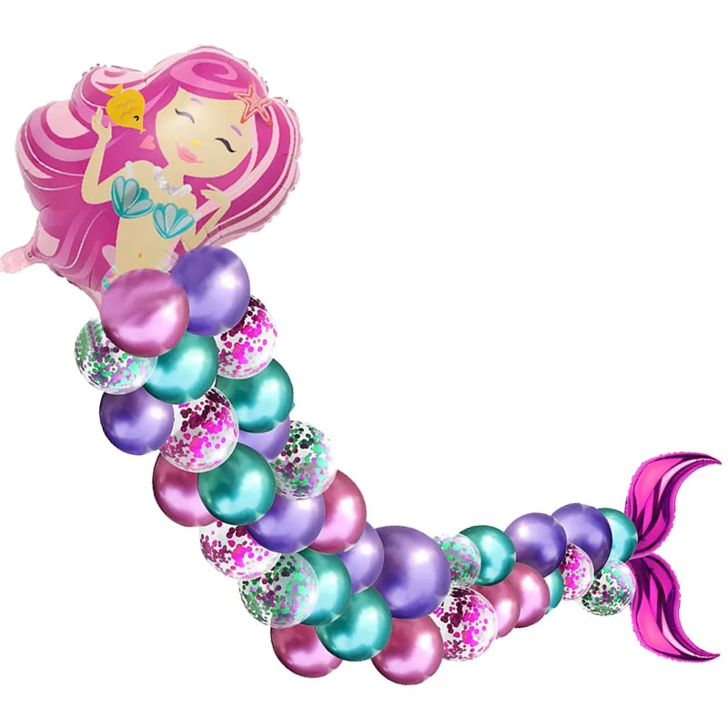 Маленькое одеяло хвост русалки шар гирлянды комплект латексные воздушные шары с металлическим отливом Русалка Вечерние детского дня рождения, платье на свадьбу, День рождения вечерние украшения