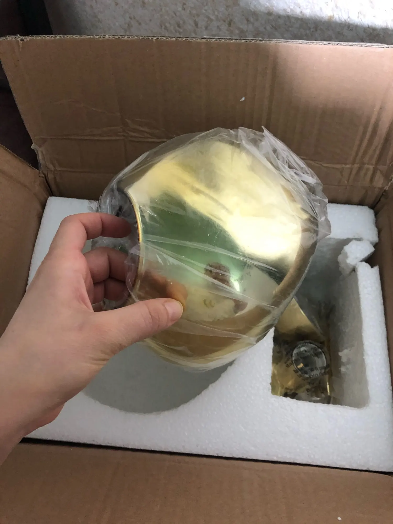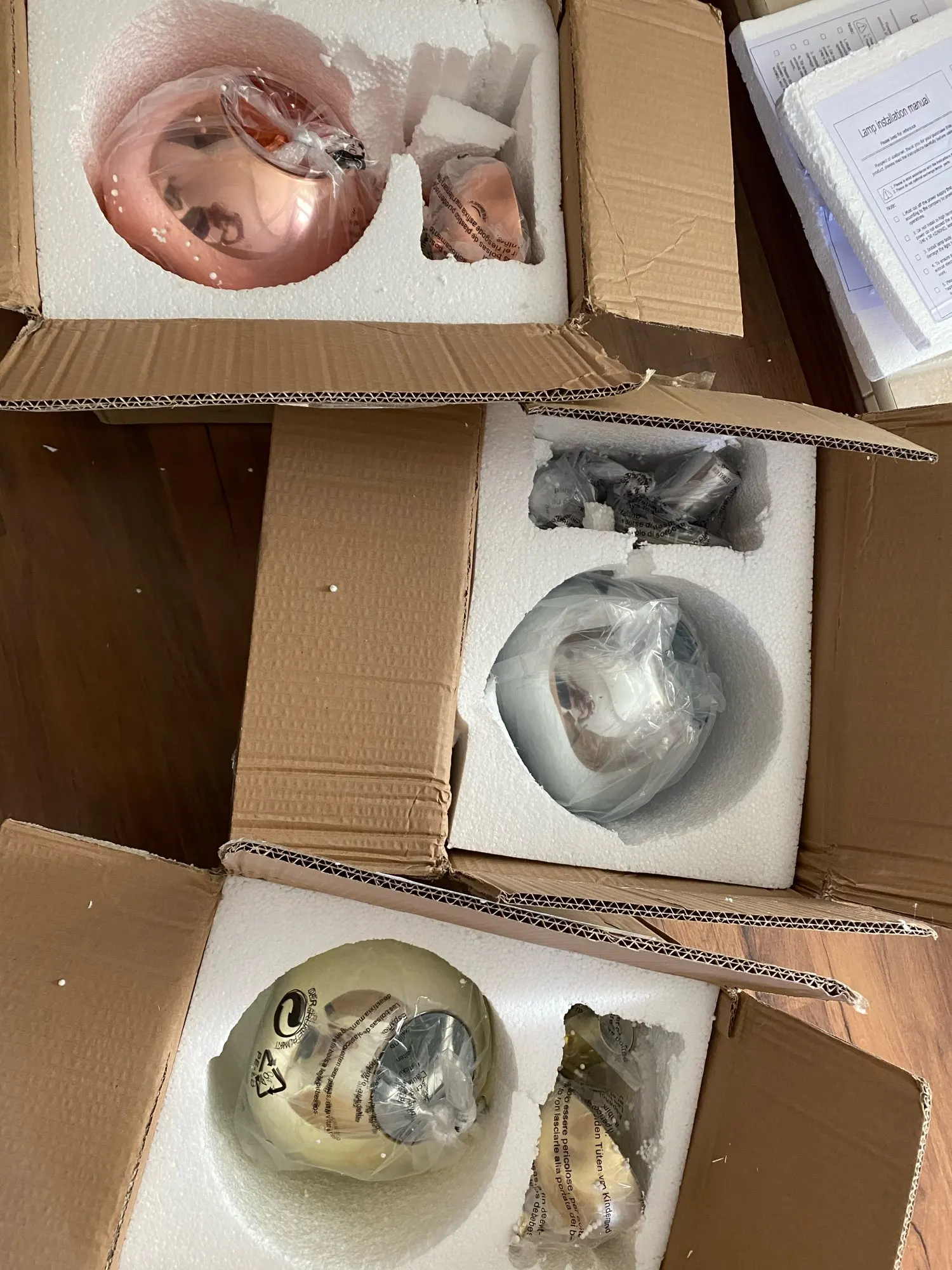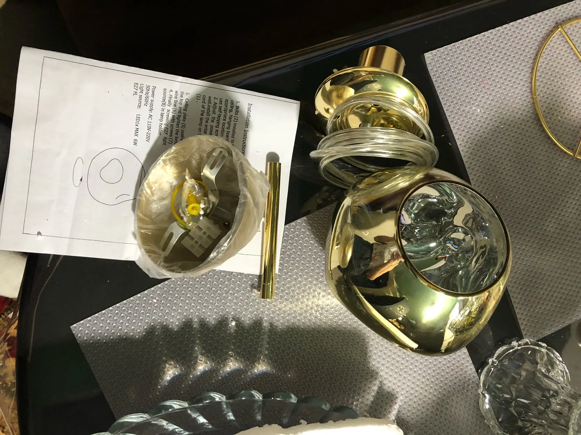 Очень переживала что не получу посылку, так как Самый маленькую лампу получил ещё месяц назад на почте, две большие только привёз курьер домой. Принципе лампа Красивая плафон пластмассовый остальные детали качественные.
