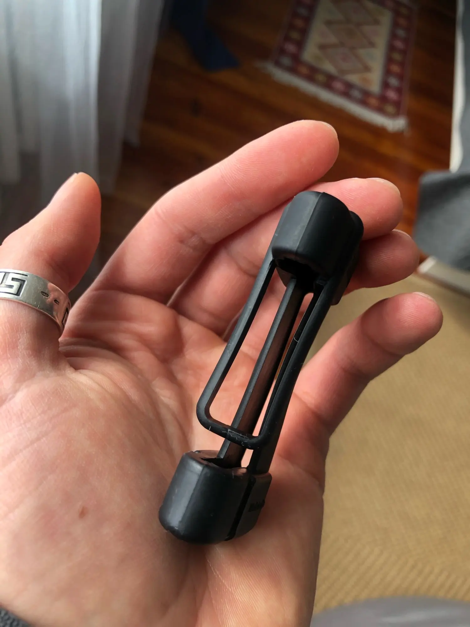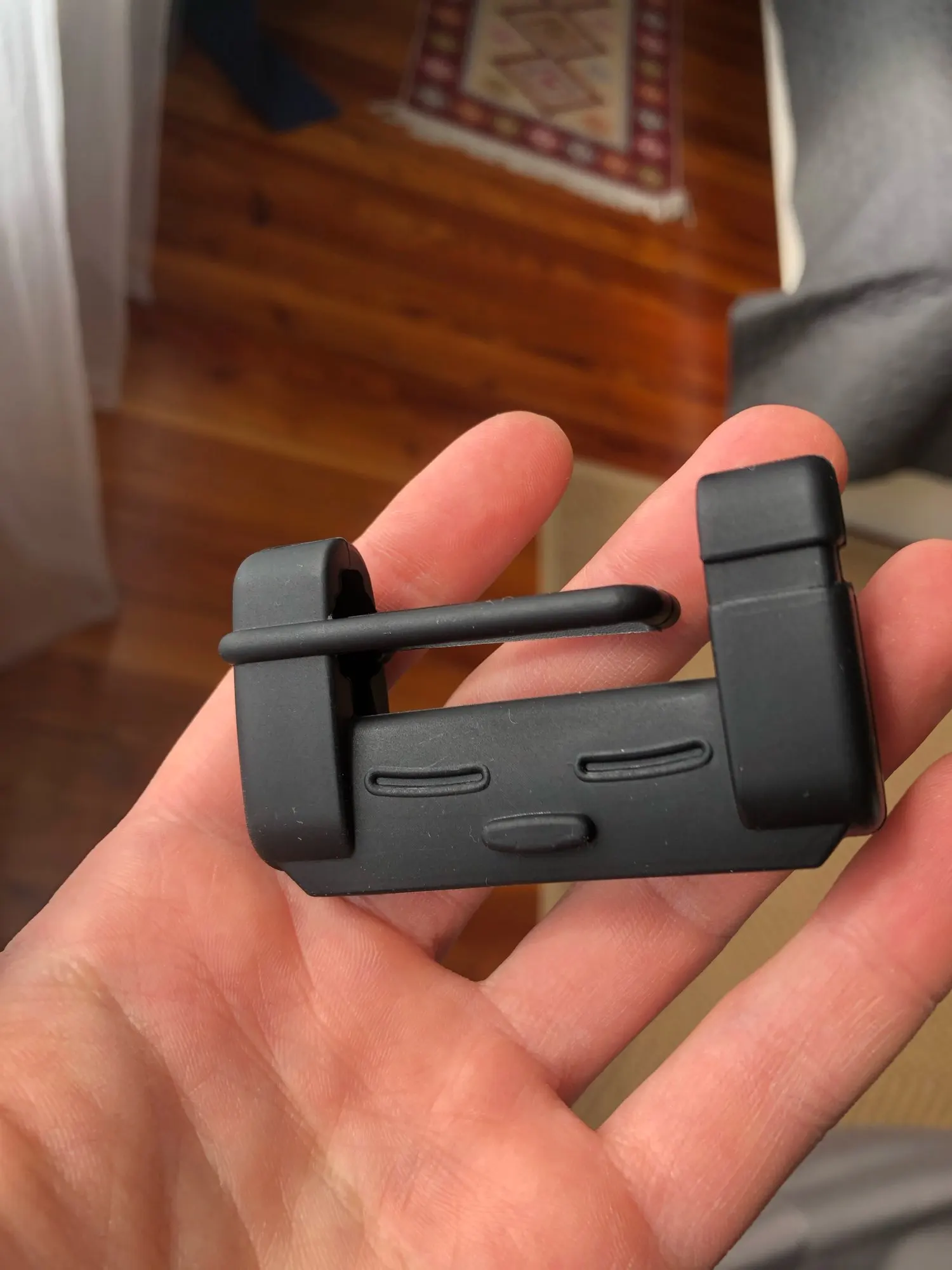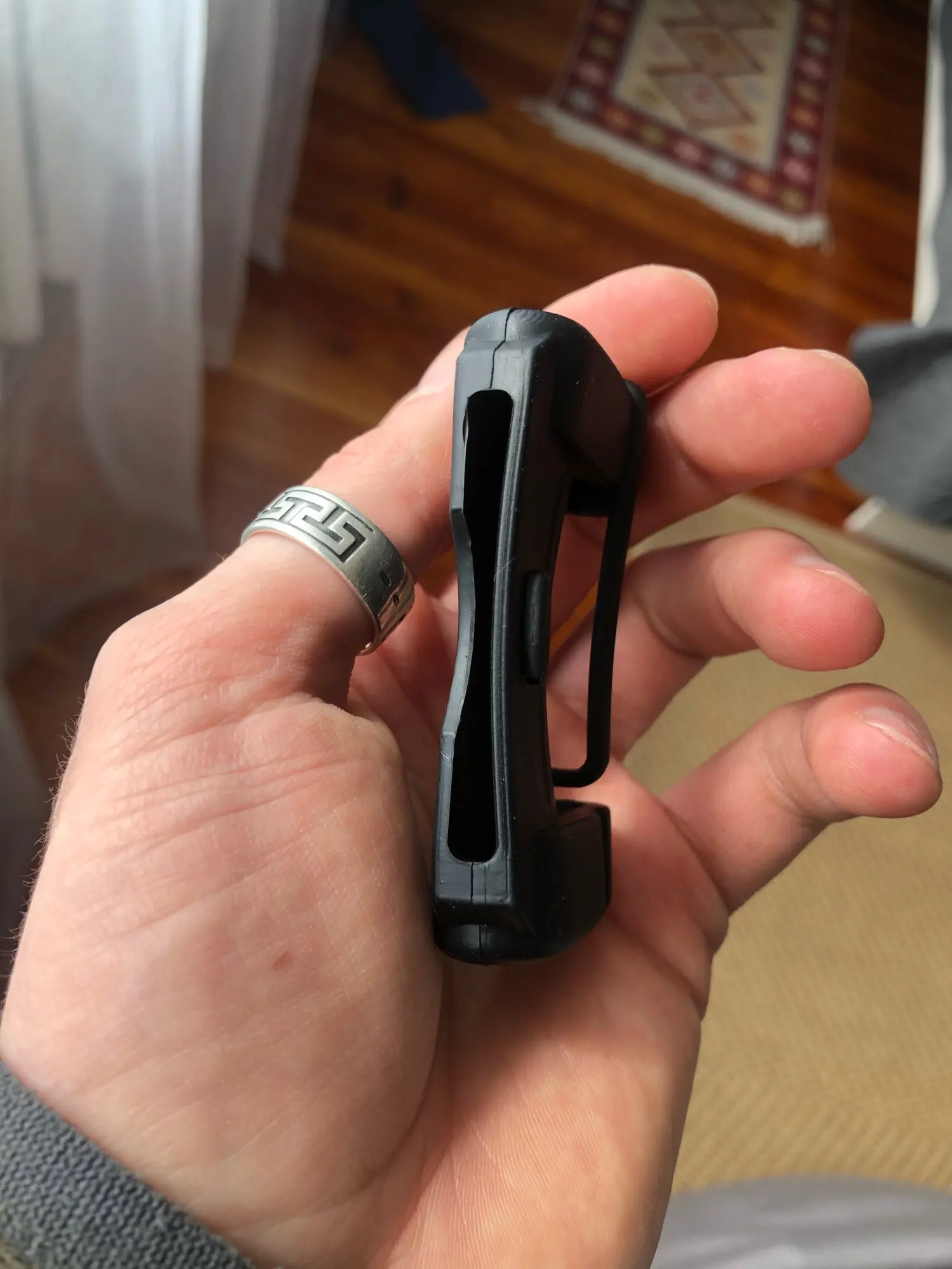 В общем то бесполезная штука, держится плохо, с ней ремень плохо скользит и резинка крепления постоянно соскальзывает.
