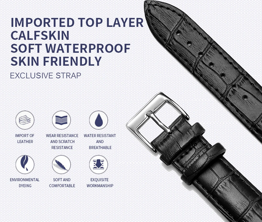Мягкий браслет на запястье, удобный ремешок для часов из натуральной кожи, 12141618202224 мм, ремешок с пряжкой + инструмент