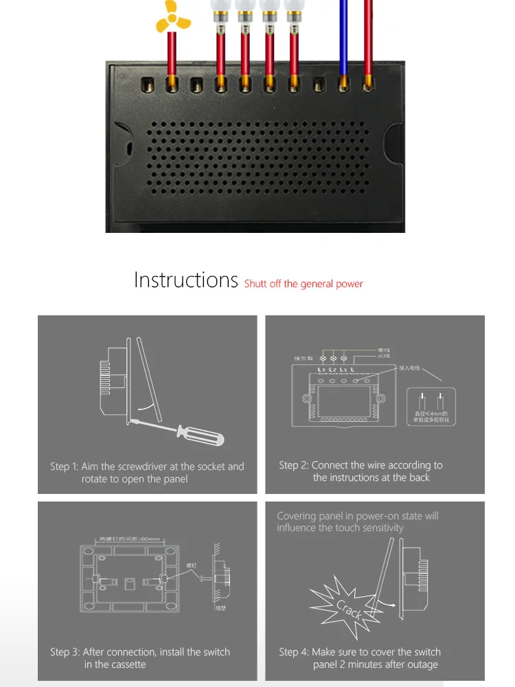 ХарактеристикиUK 4 Gang wireless Wall switch + wireless Ceiling Fan Switch