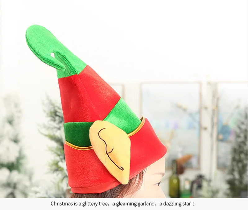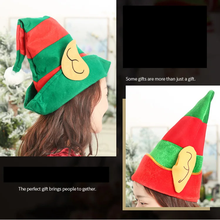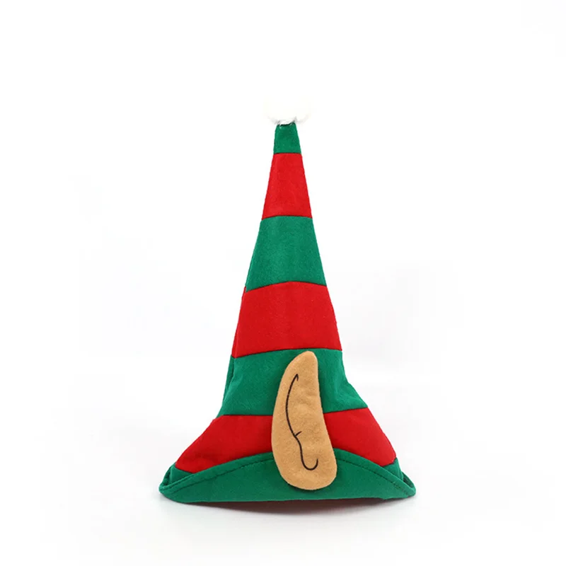 Рождественская шапка эльфа красная и зеленая полосатая повязка на голову для вечерние Нетканая Золотая Бархатная Шляпа Санты с ушками для вечеринки Рождественское украшение для волос