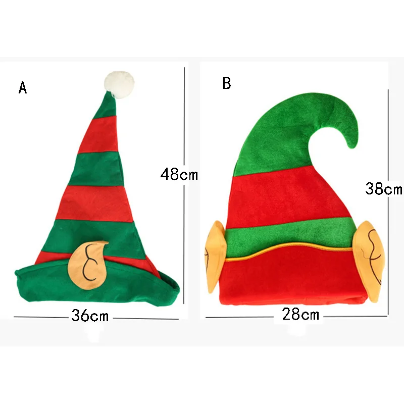 Рождественская шапка эльфа, красная и зеленая полосатая повязка на голову для вечеринки, Нетканая, золотистая, Вельветовая, шапка Санты с ушками для вечерние, Рождественское украшение для волос