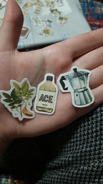 Прекрасные стикеры, красивые цвета, качественная печать. Хорошо клеятся, но немного сложно подцепить и отделить от бумажки, которая закрывает поверхность с клеем. Не самая удобная коробочка, но она и не для хранения, так что все хорошо.