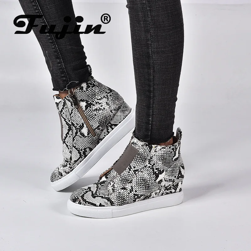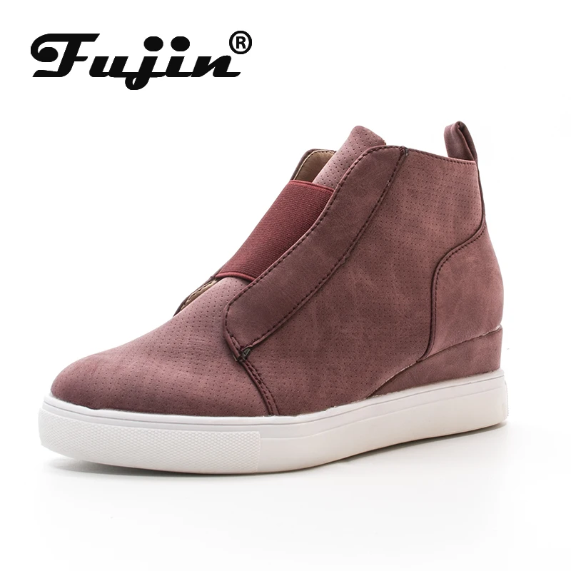 Fujinженская повседневная обувь из мягкой кожи; Сезон зима-осень; Лидер продаж; Кроссовки на платформе; Вулканизированные слипоны; Женская обувь на танкетке для отдыха