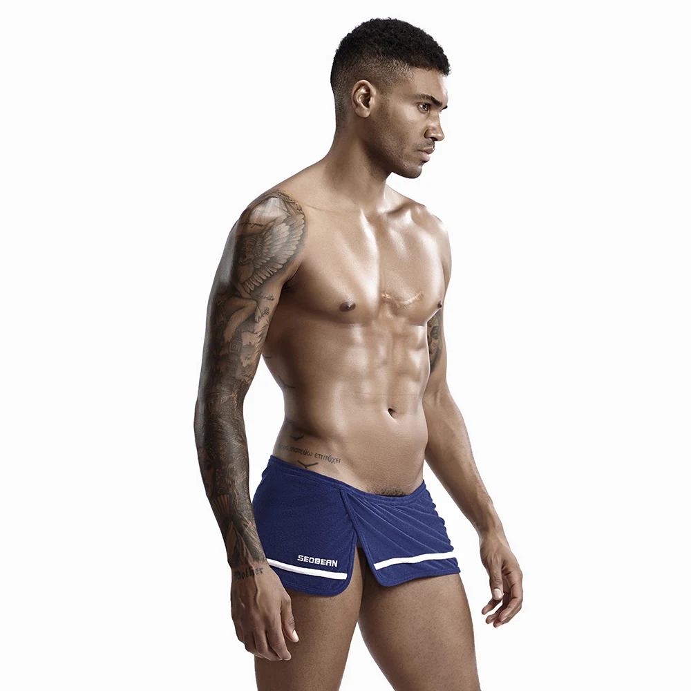 Для мужчин сексуальные домашние шорты Домашняя одежда для сна сбоку Разделение свободная Пижама штаны Пижамные шорты Для мужчин ночное лаунж-пижама днища Как нижнее белье + шорты