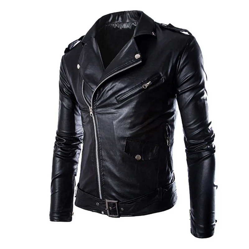 Мужская приталенная куртка из искусственной кожи на молнии с косым ...
