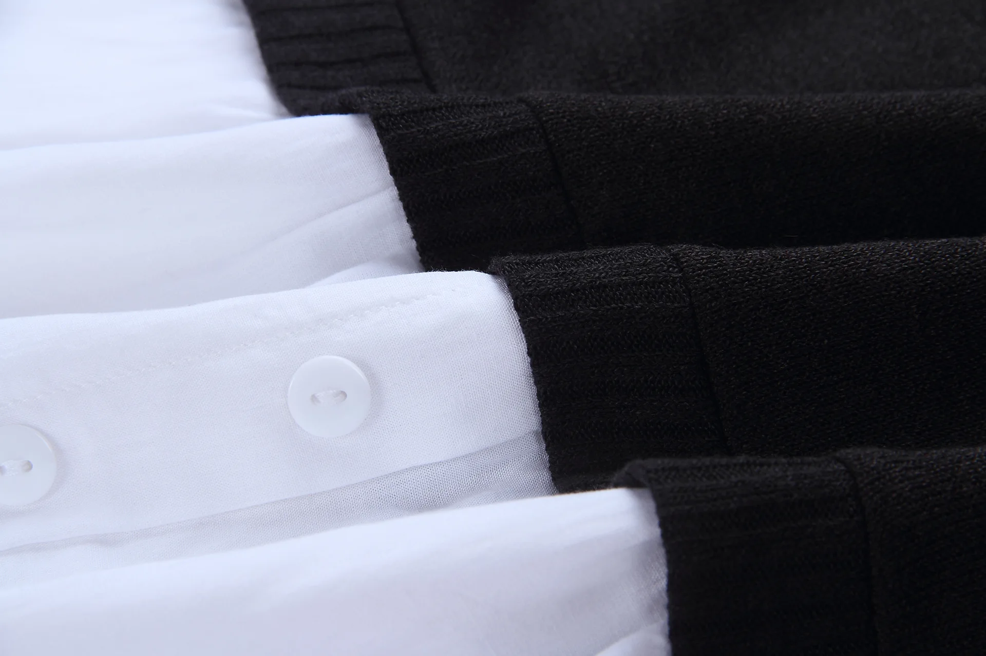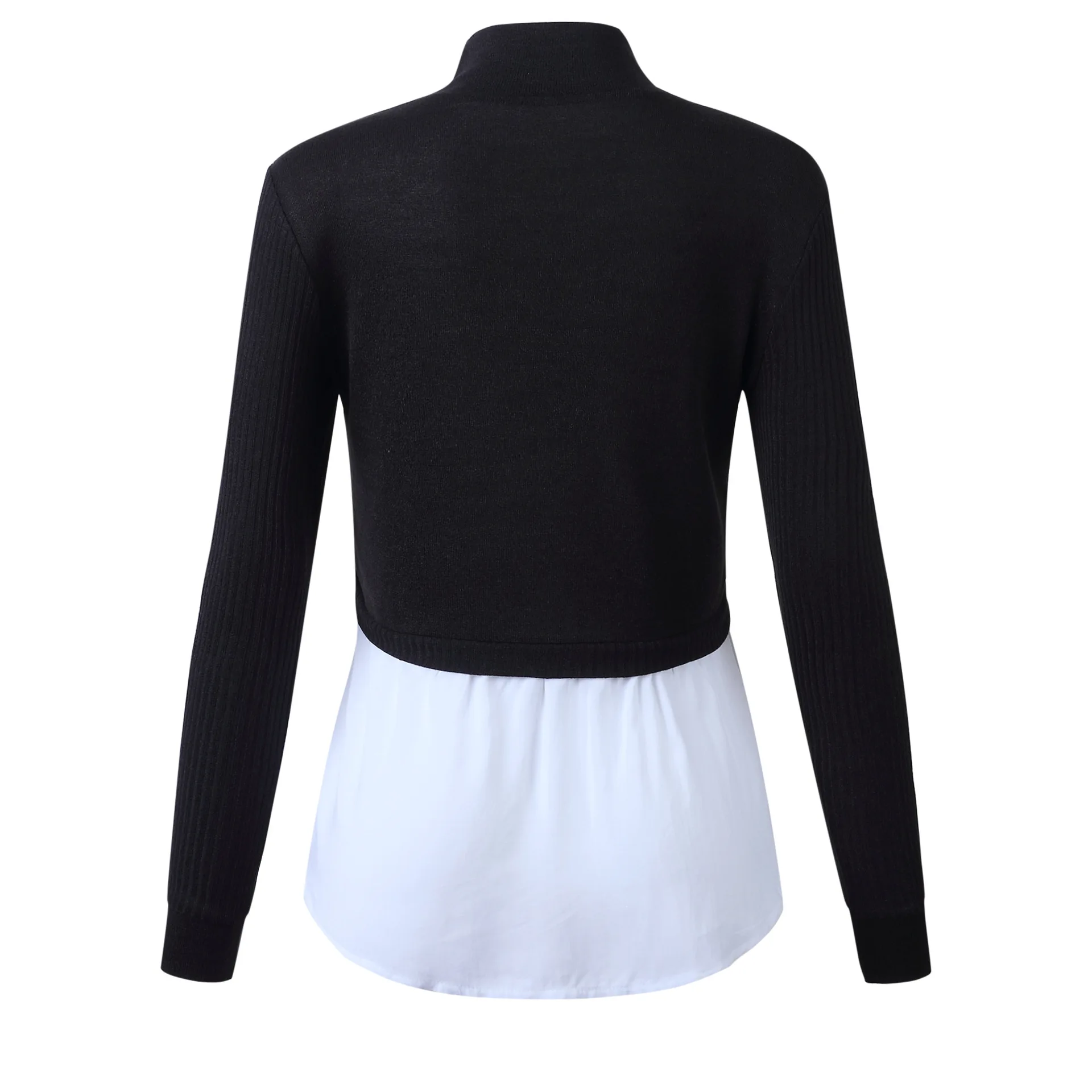 Женский трикотажный свитер-водолазка, черный пуловер составного кроя с длинным рукавом и пуговицами, Осень-зима 2020