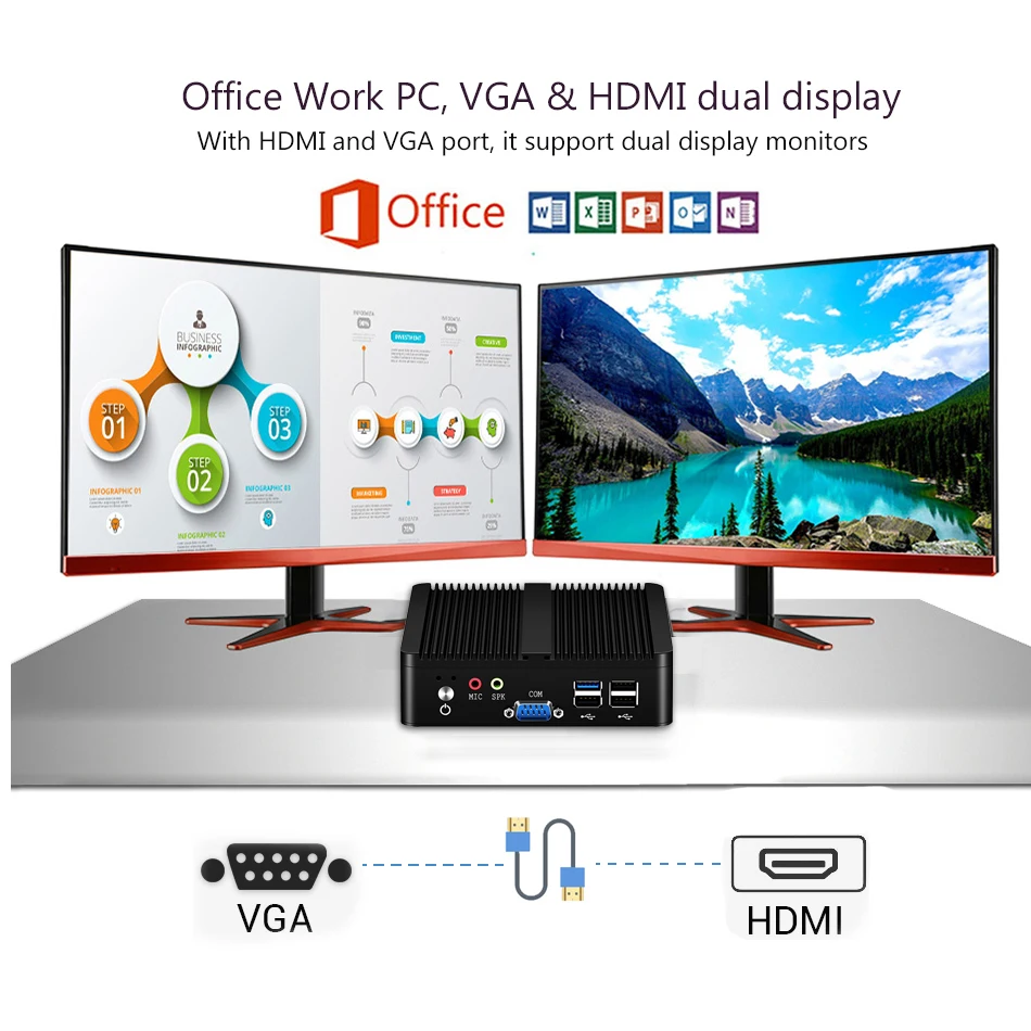 Мини-ПК без вентилятора Intel Celeron J1900 N2930 четырехъядерный двойной LAN 2COM Windows 10 Ubuntu Wifi промышленный офисный ПК HTPC мини-компьютер