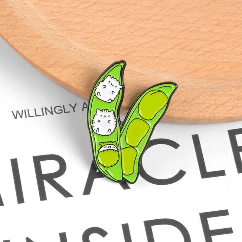 Эмалированная заколка с изображением ежика, горохового стручка, мул...