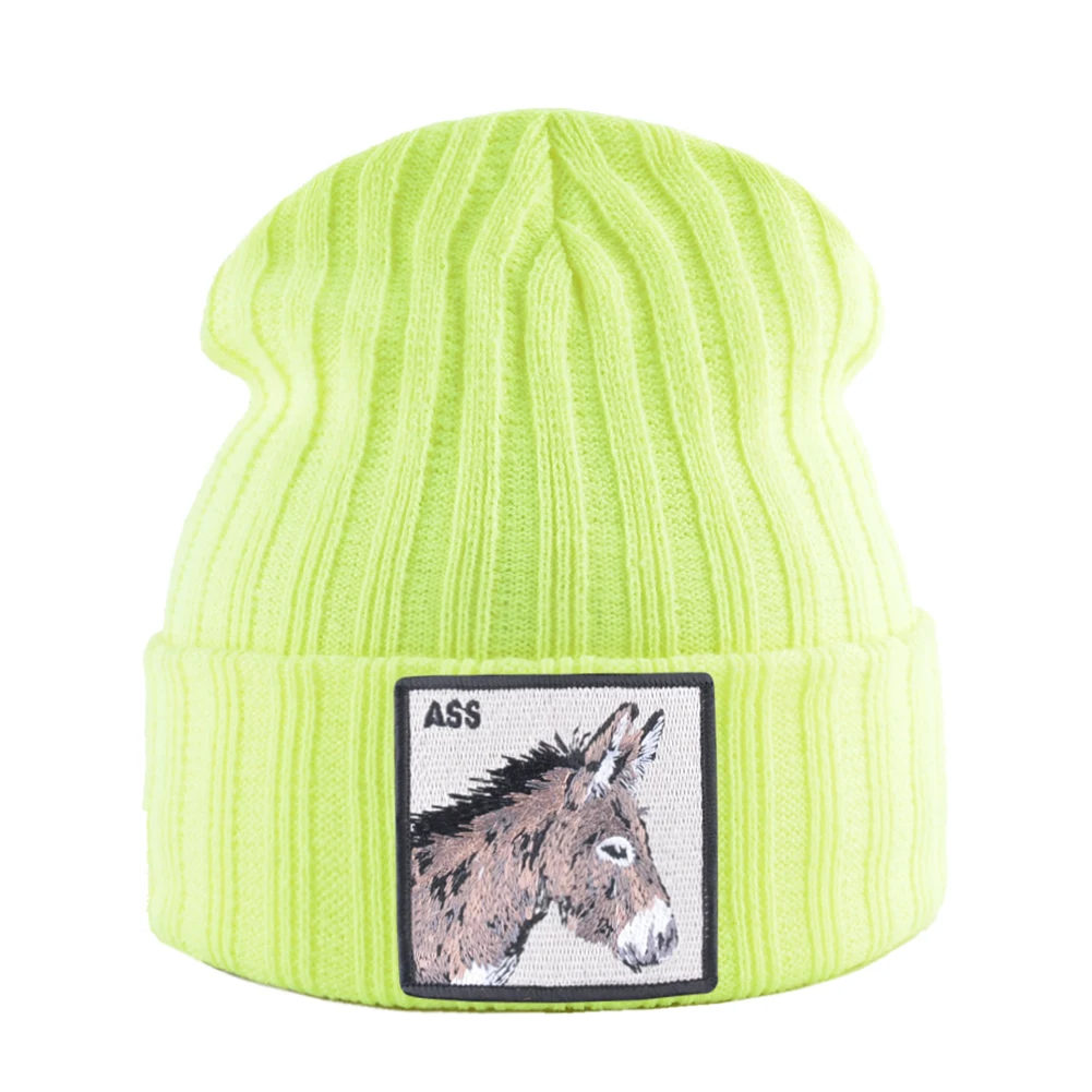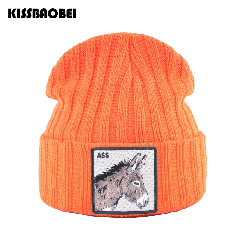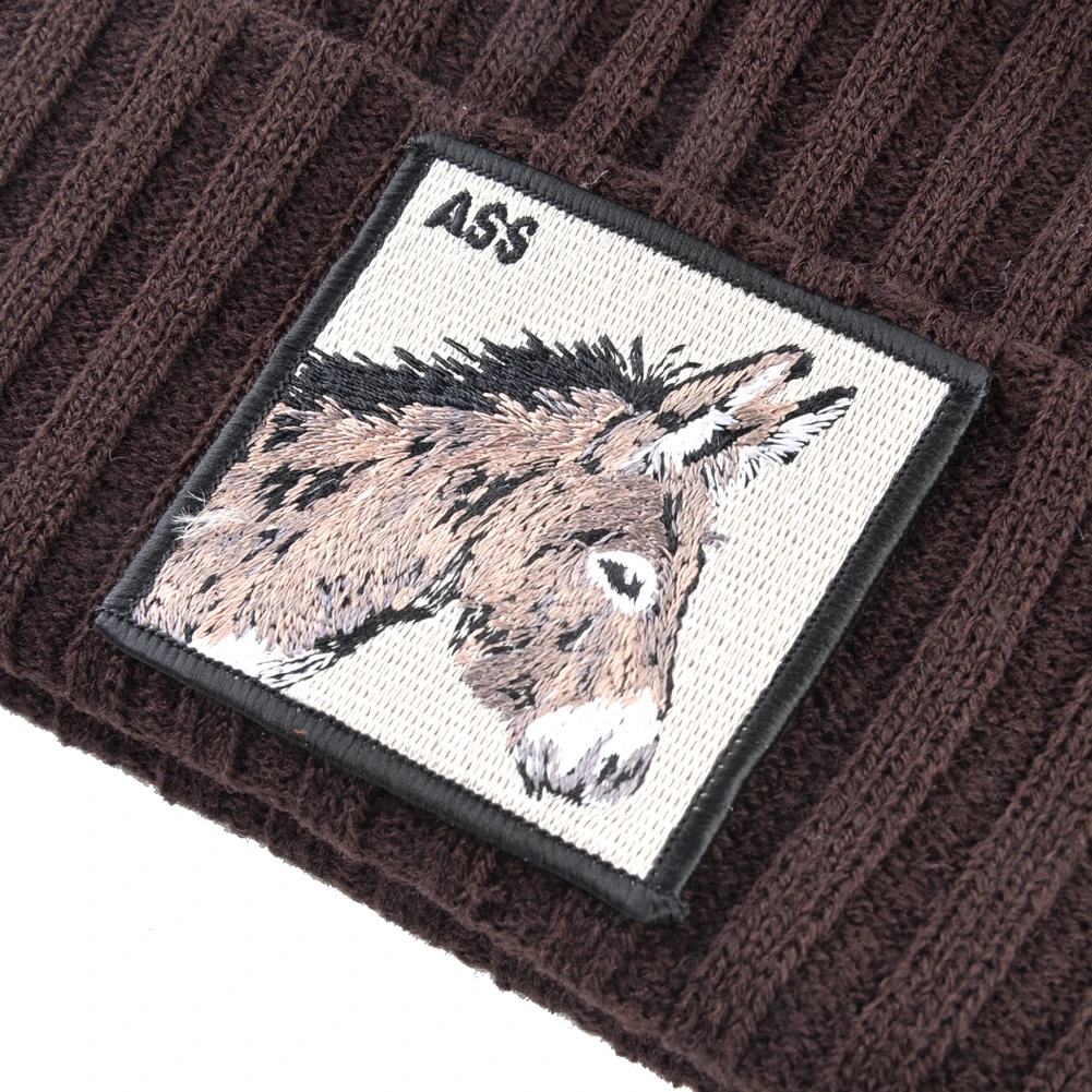 Шапка в виде животного, теплые зимние шапки для женщин, облегающие шапки, Мужская облегающая шапка, шапка, мужские вязаные шапки с милой вышивкой