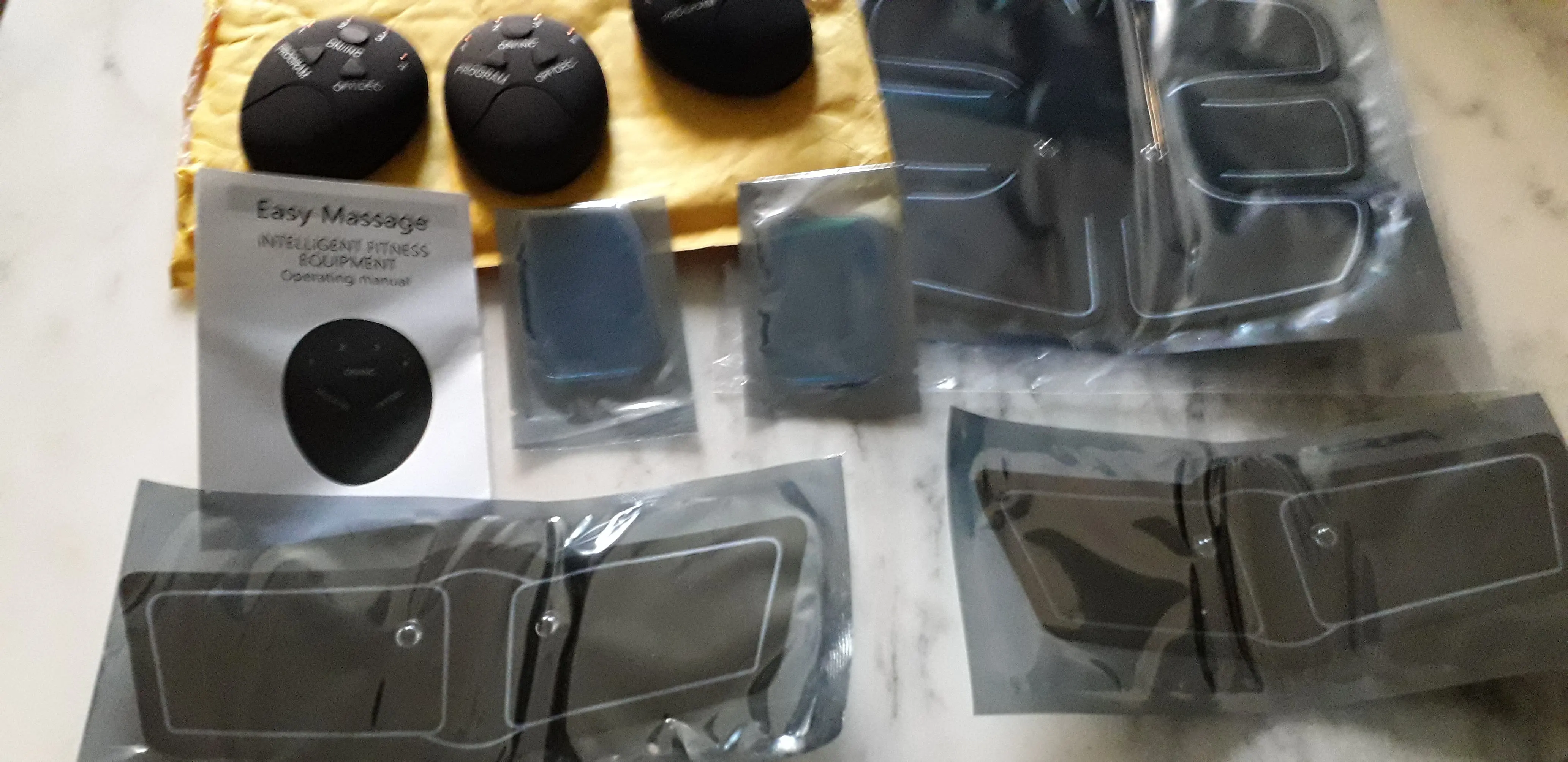 Доставка в Краснодар 3 недели. качество исполнения на высоте. мышцы дёргает прилично. Программы как в описании. о результатах говорить рано, но все целое, качественное,. рабочее. Заказывал полный комплект, батареек на 1 устройство нужно 2 шт. ааа в комплекте нет, на весь набор 8 батареек закупаете. В целом все понравилось.