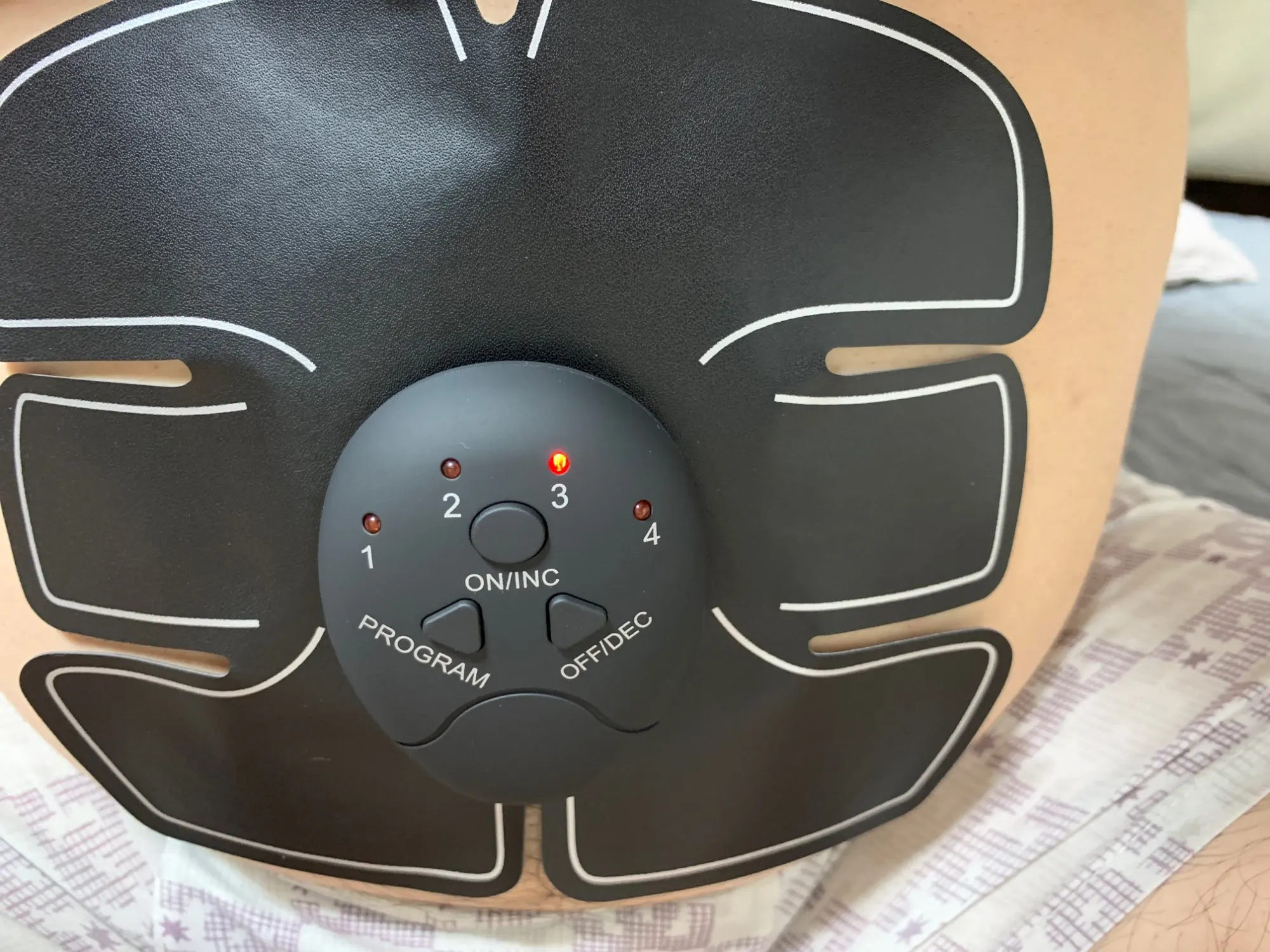 Работает, около 6 режимов , 3 уровня силы, на последнем хреначит прилично, жаль нет описания режимов, в общем надо проверять эффект, мож уберет немного жирка с пуза.
