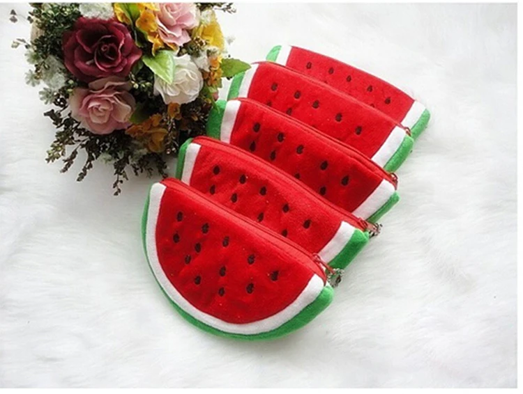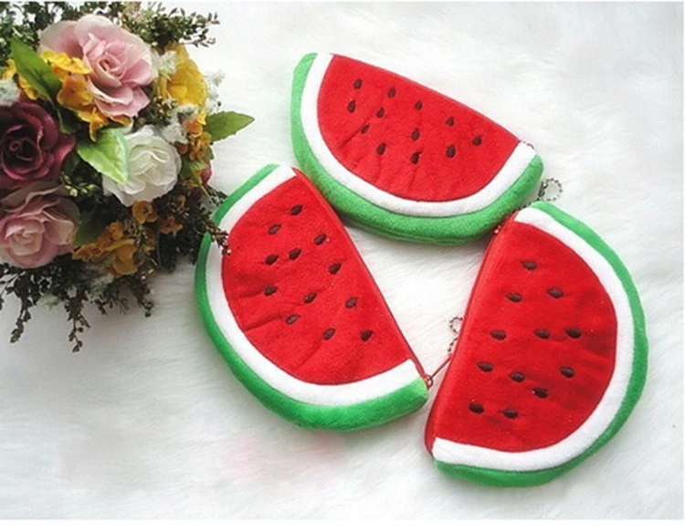 Новый Миниатюрный Плюшевый красный кошелек для монет с арбузом, кошелек, сумка, симпатичный мультяшный держатель для карт с фруктами, Модный женский