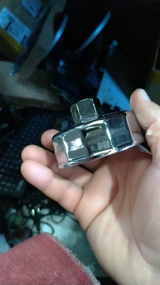 901 Чашка подошла для 110 фильтра на тойоту. сидит плотно, крепления гайки на чашку не внушает доверия, но и фильтр обычно сильно не затягивают. Для замены фильтра в гараже очень удобная вещь. На поверхности есть шероховатости, видимо плохо отработали металл, перед нанесением хрома. Доставка месяц.