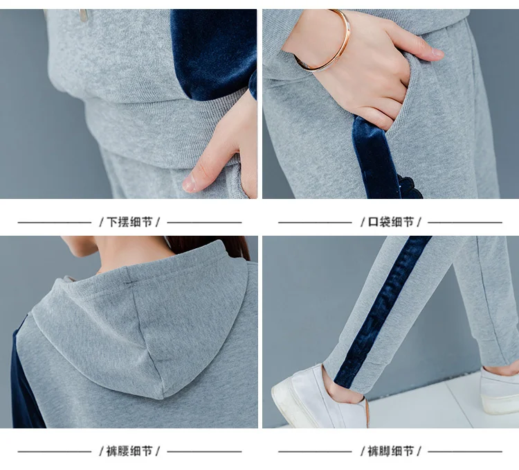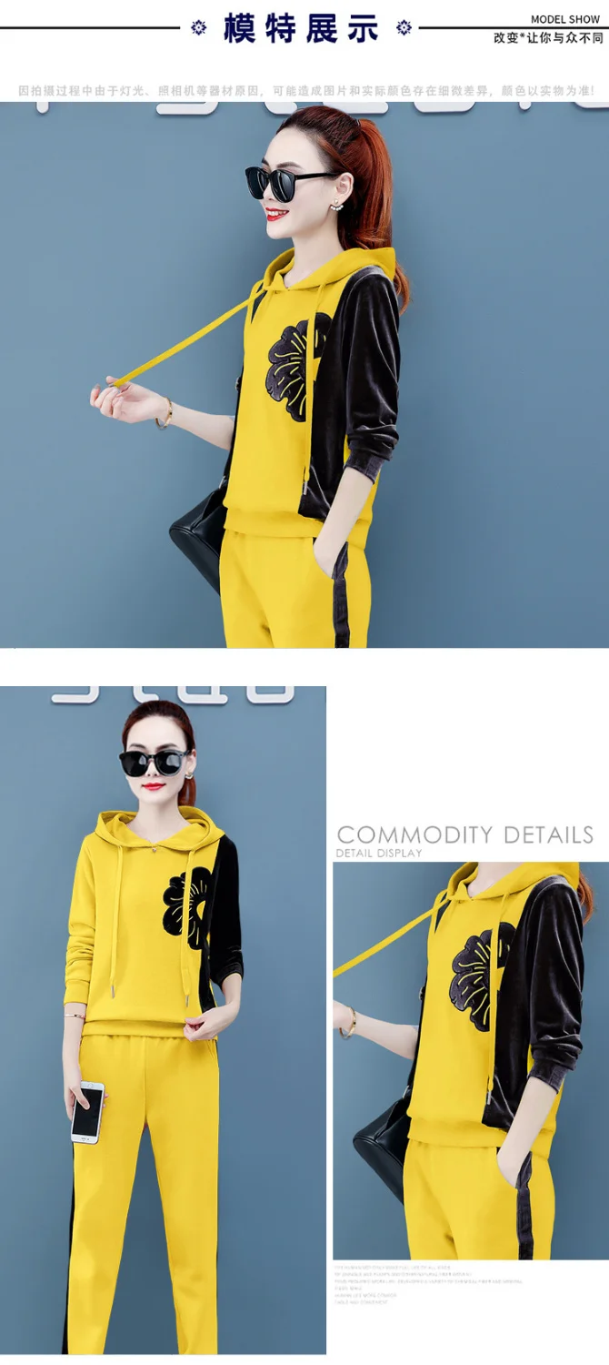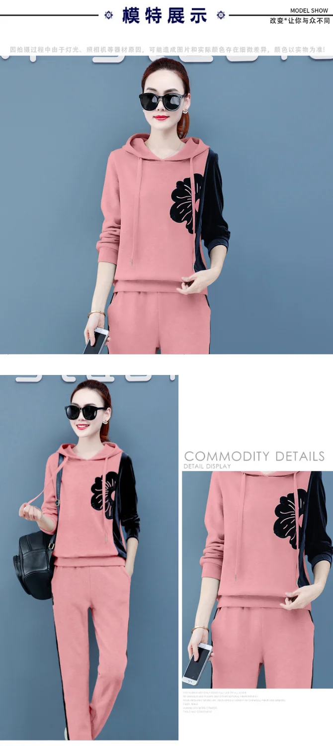 Костюм спортивный женский бархатный из двух предметов, толстовка с капюшоном и штаны, комплект одежды большого размера, зимняя одежда на осень и зиму